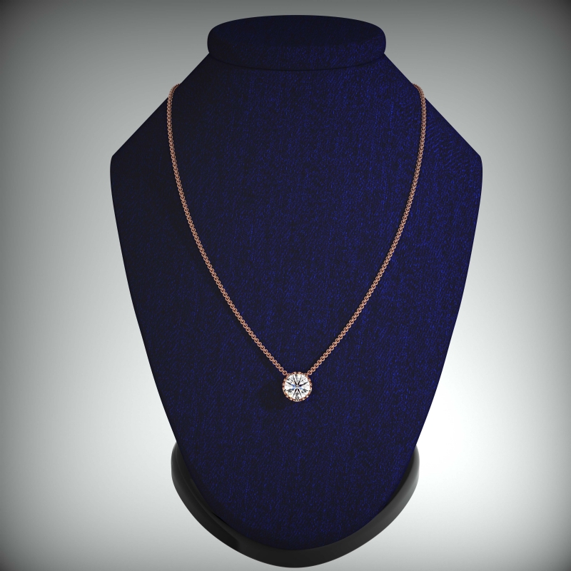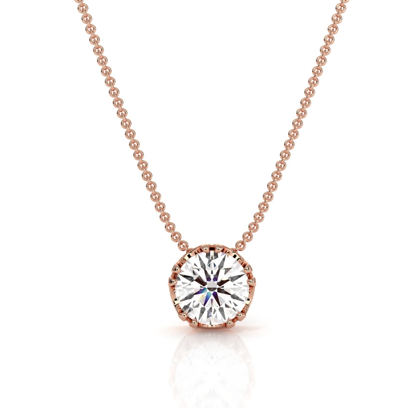 Solitaire U Cut Prong Round Semi Mount Floating Pendant in 18k Rose Gold.