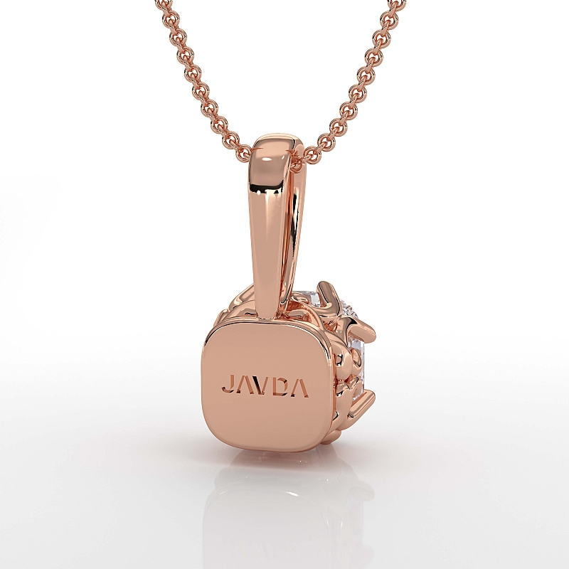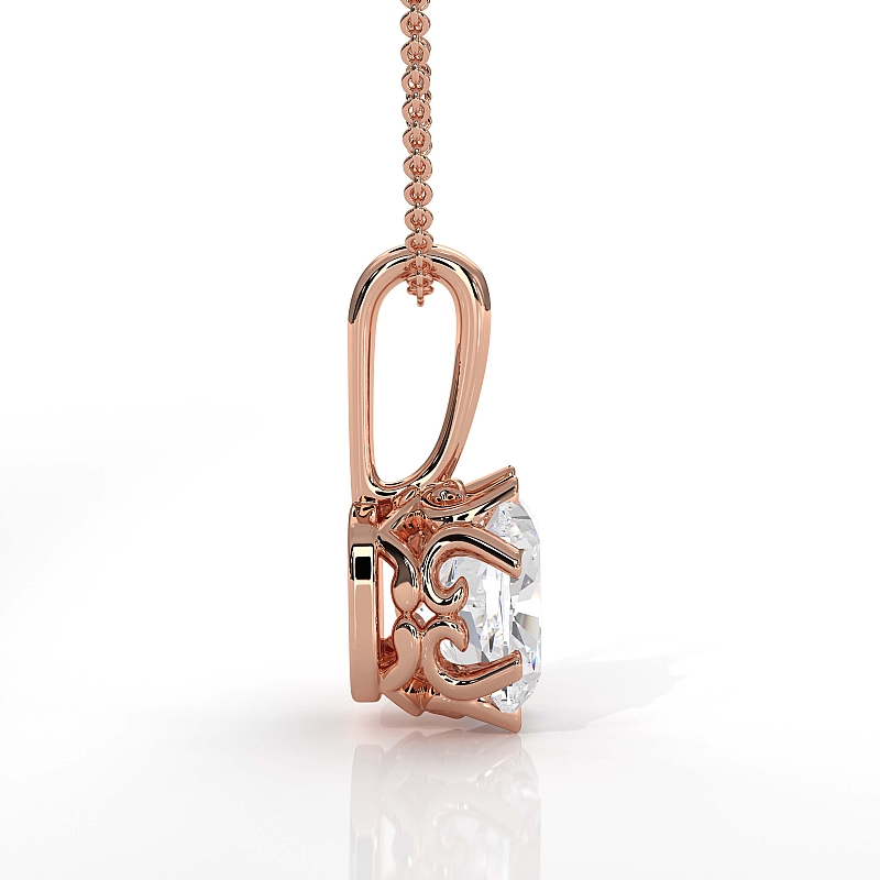 Cushion Cut Diamond Filigree Semi Mount Bail Solitaire Pendant in 18k Rose Gold.