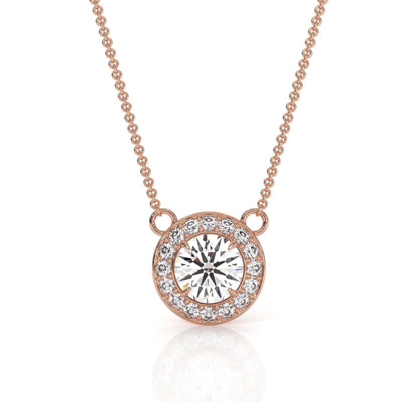 round diamond engagement pendant report by gia, d color & vs2 clarity, 18k rose gold (0.62 ct. tw.)