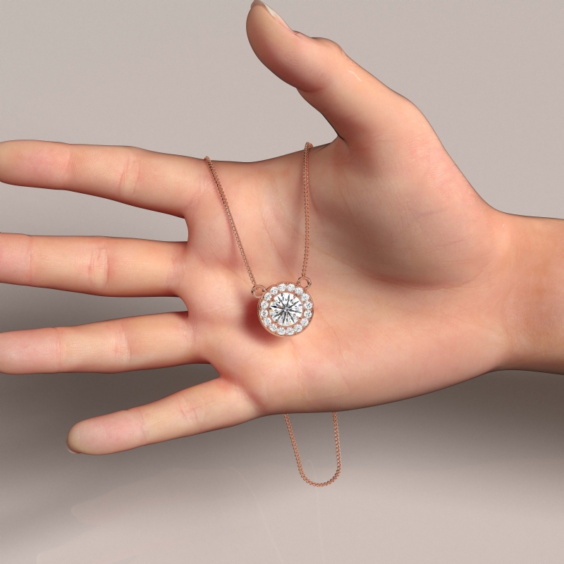 style Engagement Pendant, center is Round shape Diamond Report by GIA, D Color & VS2 clarity, Made in 18k Rose Gold (0.62 ct. tw.)