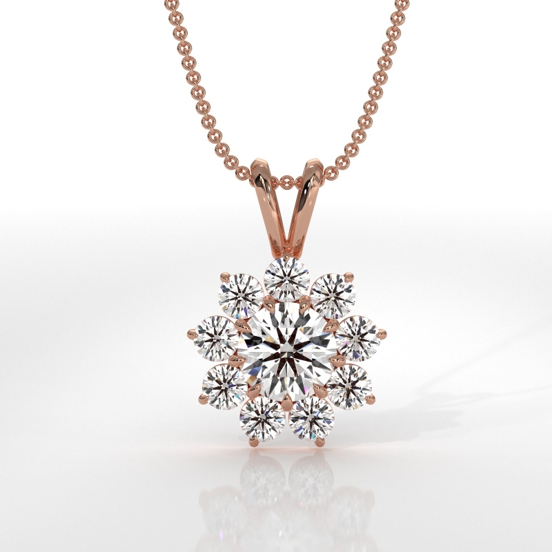 style Engagement Pendant, center is Round shape Diamond Report by GIA, E Color & SI1 clarity, Made in 14k Rose Gold (0.94 ct. tw.)