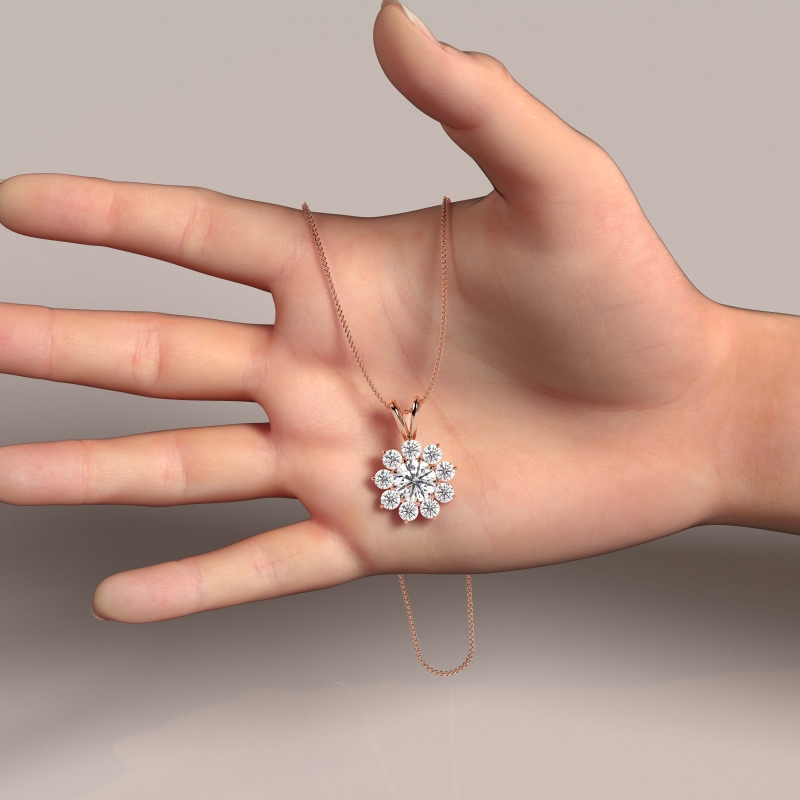 Flower Cluster Round Cut Semi Mount Double Bail Pendant in 14k Rose Gold 0.44Ct.