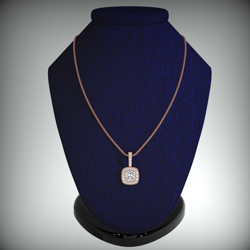 style Engagement Pendant, center is Cushion shape Diamond Report by GIA, H Color & VVS2 clarity, Made in 14k Rose Gold (0.7 ct. tw.)