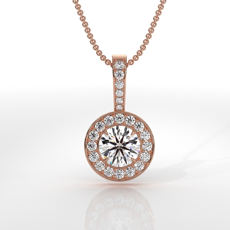 style Engagement Pendant, center is Round shape Diamond Report by GIA, F Color & VS2 clarity, Made in 14k Rose Gold (0.69 ct. tw.)