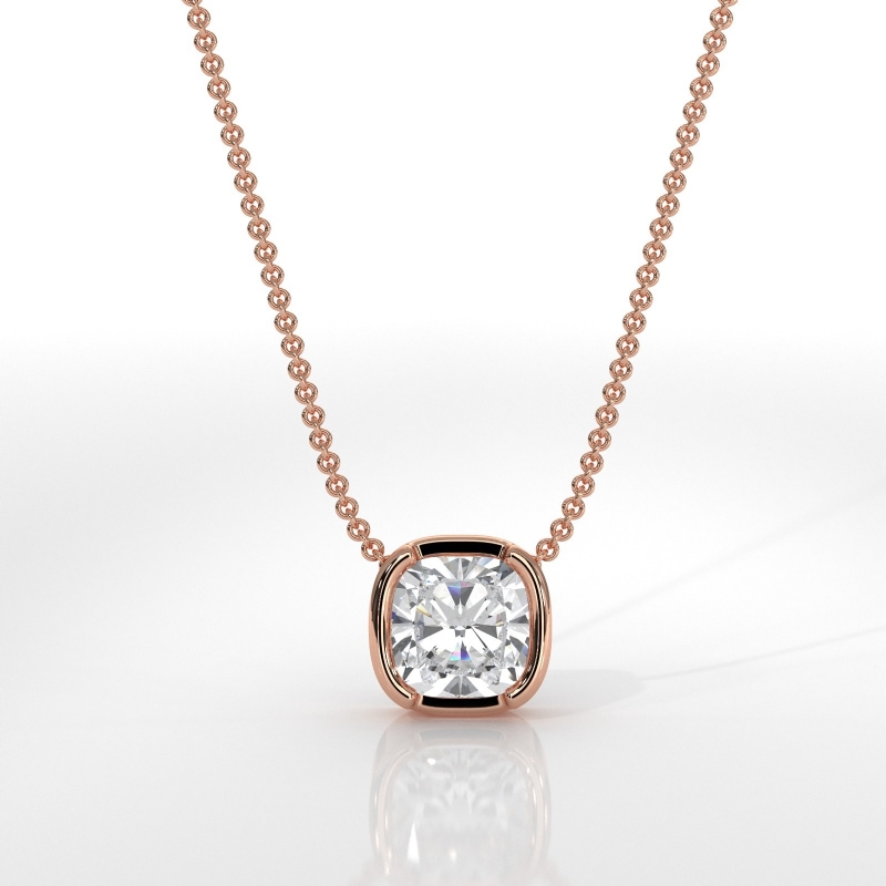 cushion diamond engagement pendant report by gia, h color & vvs2 clarity, 14k rose gold (0.51 ct. tw.)