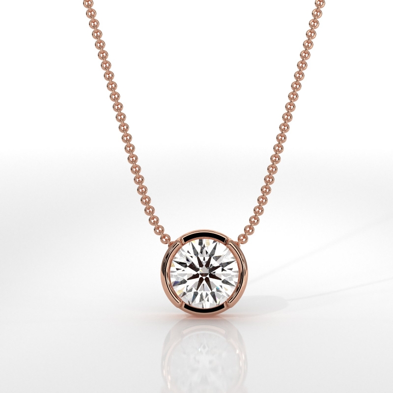 Solitaire Bezel Set Round Cut Semi Mount Pendant with Chain in 14k Rose Gold - javda.com