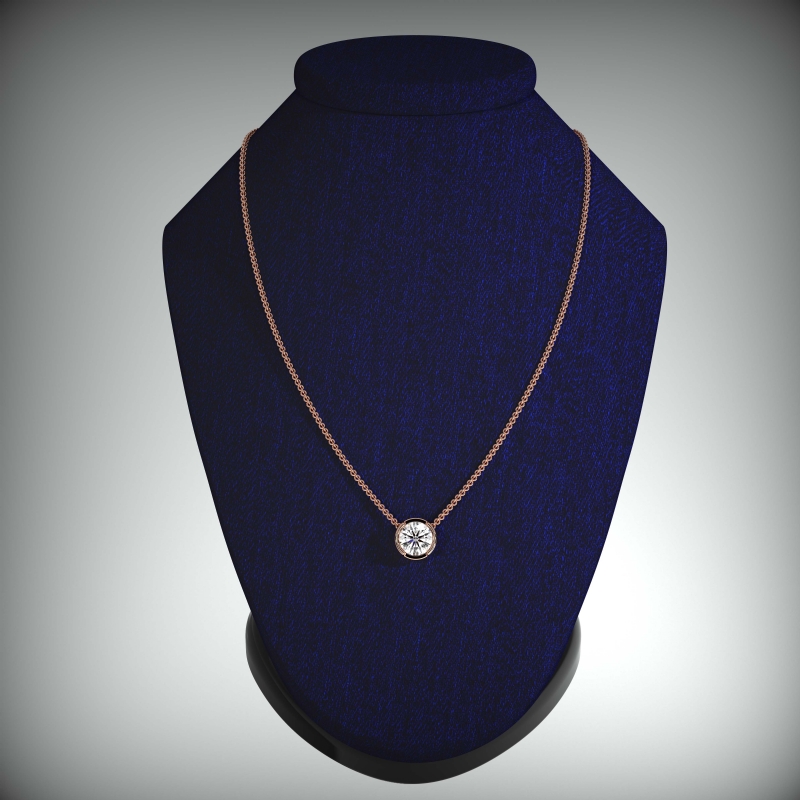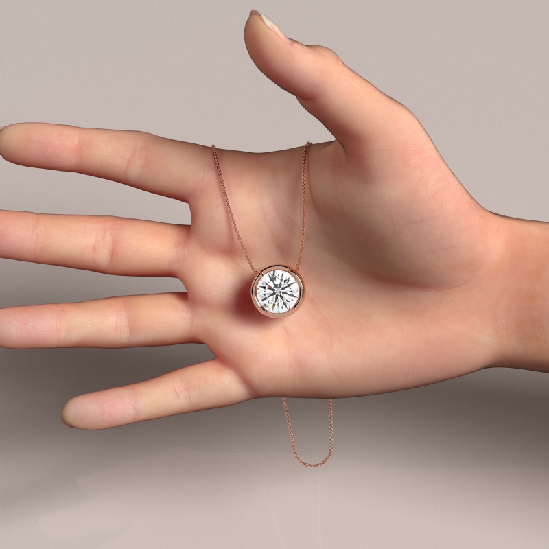 Solitaire Bezel Set Round Cut Semi Mount Pendant with Chain in 14k Rose Gold.