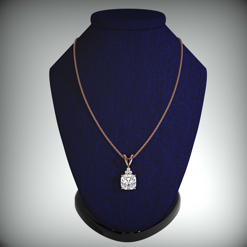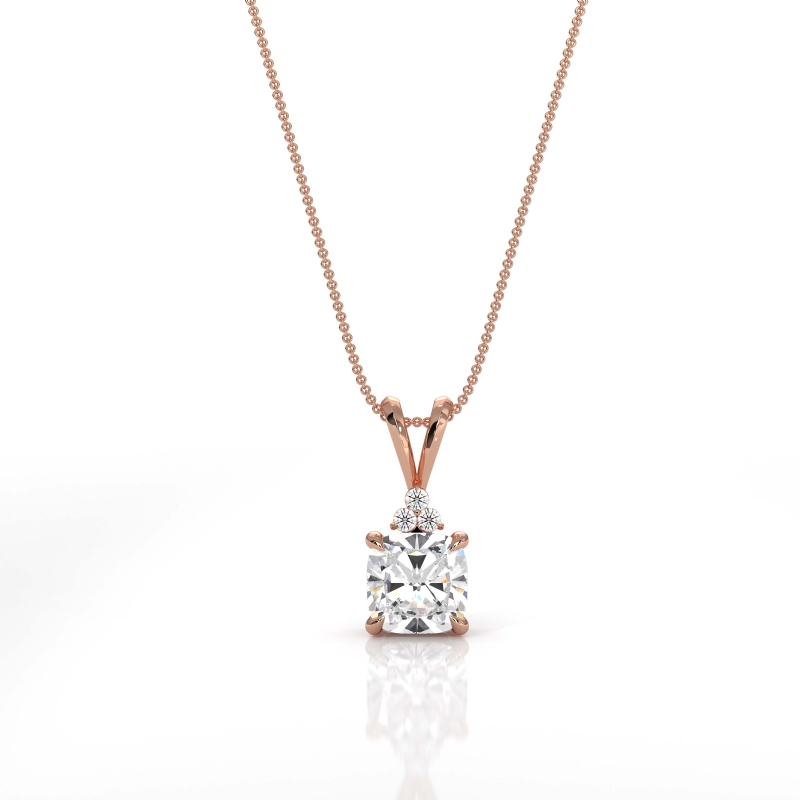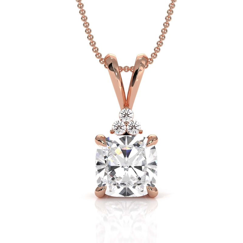 style Engagement Pendant, center is Cushion shape Diamond Report by IGI, E Color & VS1 clarity, Made in 14k Rose Gold (5.53 ct. tw.)