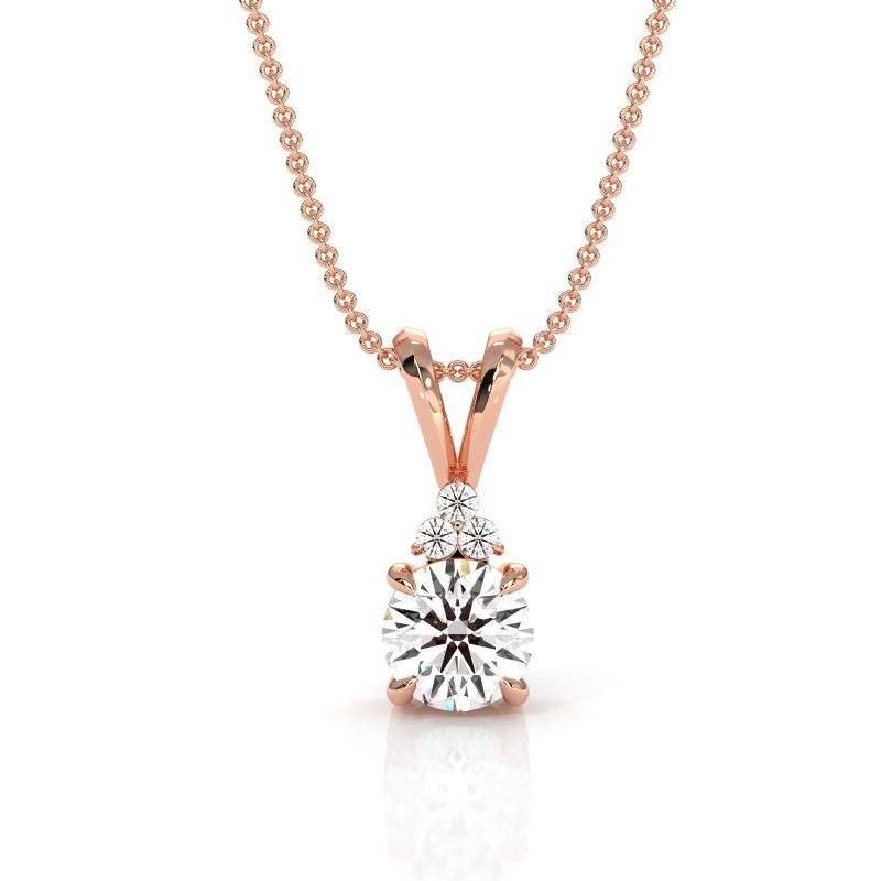 round diamond engagement pendant report by gia, f color & vs1 clarity, 18k rose gold (0.53 ct. tw.)