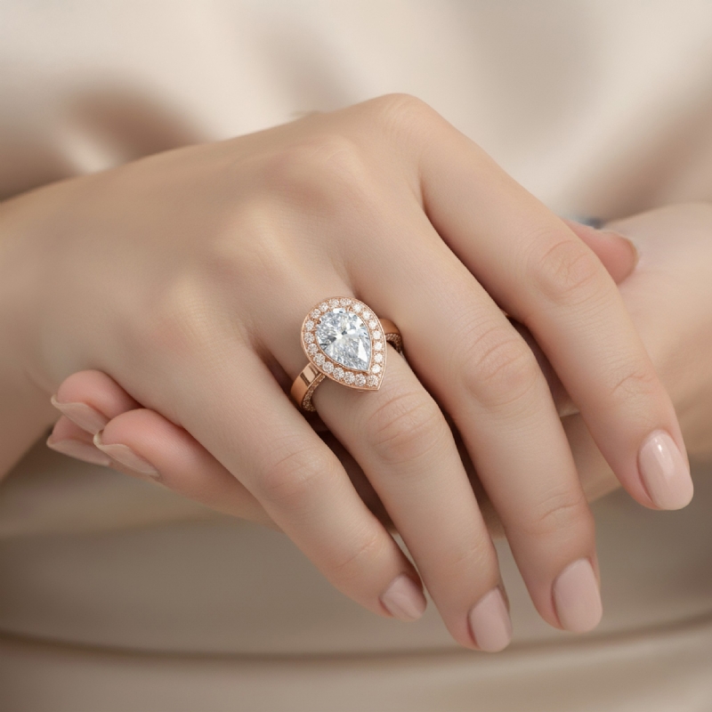 pear diamond engagement ring report by gia, i color & si2 clarity, 14k rose gold (2.46 ct. tw.)