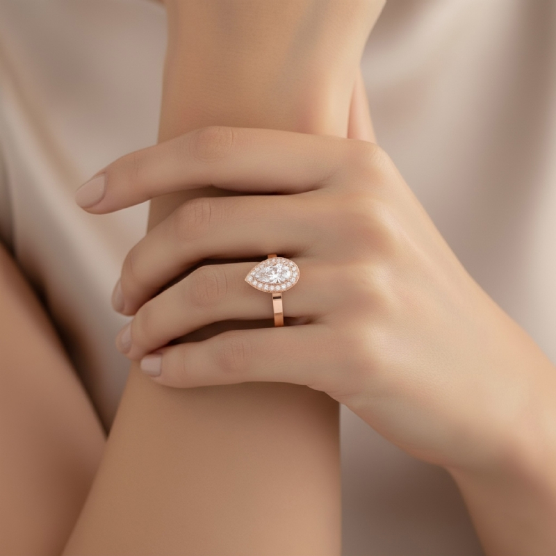 Diamond Engagement Pear Cut Semi Mount Pave Ring Setting 14k Rose Gold 1.55Ct.