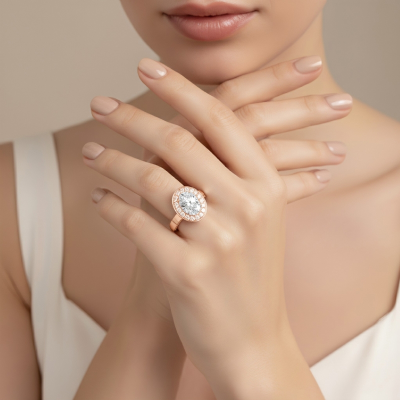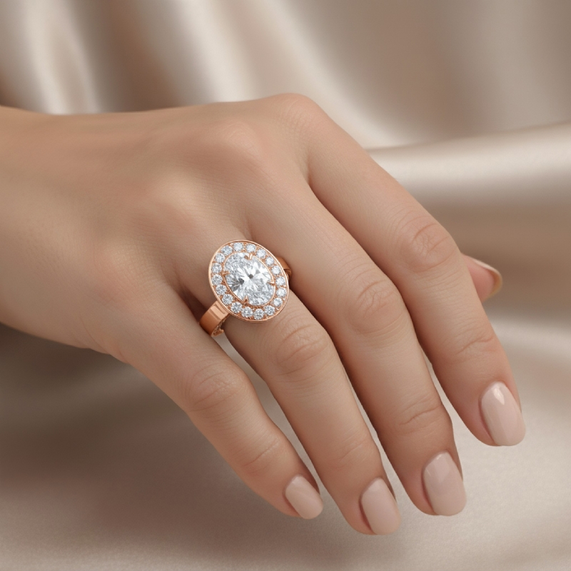oval diamond engagement ring report by gia, j color & si2 clarity, 18k rose gold (2.35 ct. tw.)