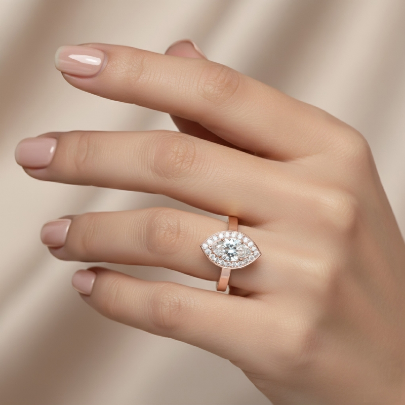 Marquise Semi Mount Diamond Engagement Pave Ring Setting 14k Rose Gold 1.5Ct.