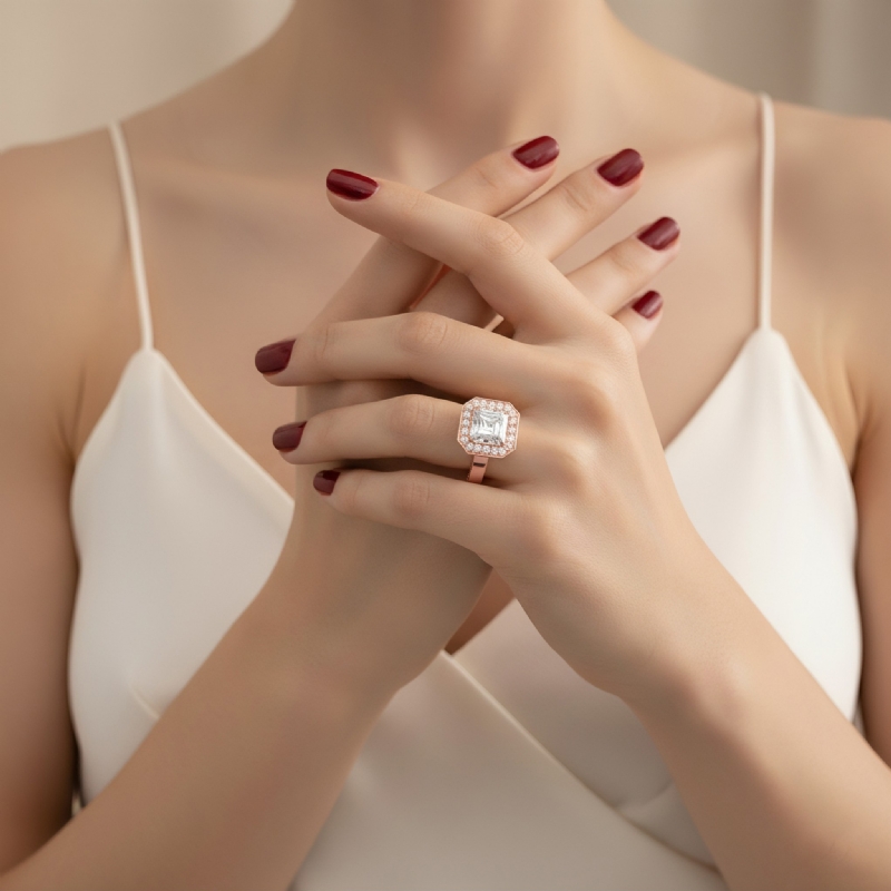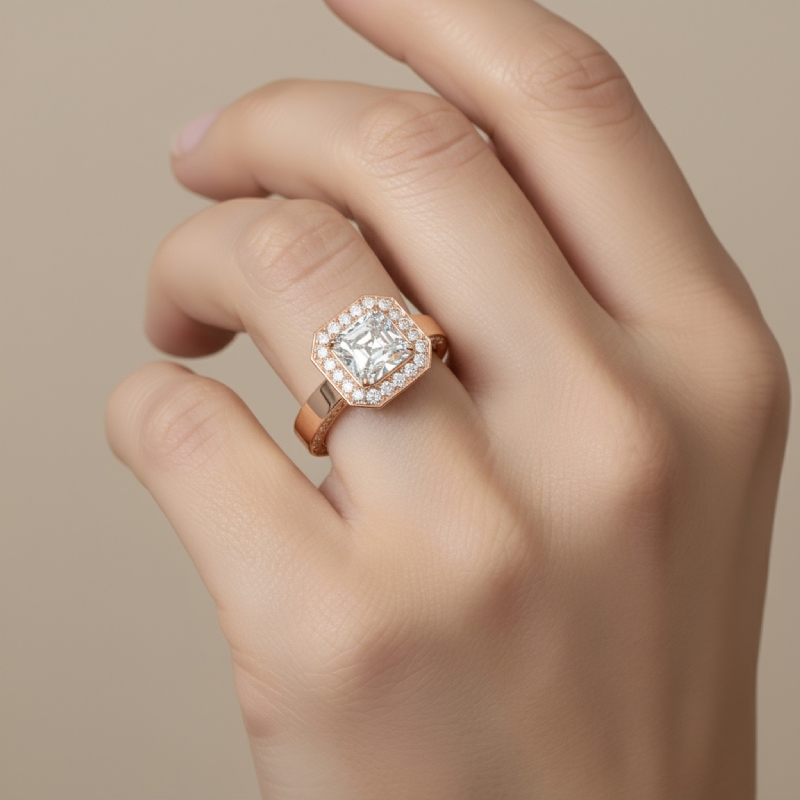 asscher diamond engagement ring report by igi, d color & vs1 clarity, 18k rose gold (3.92 ct. tw.)