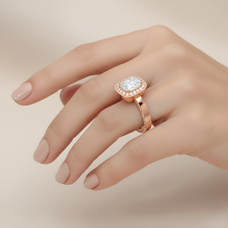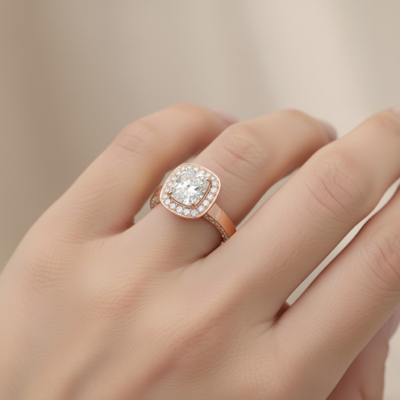 style Engagement Ring, center is Cushion shape Diamond Report by GIA, E Color & VVS1 clarity, Made in 14k Rose Gold (1.88 ct. tw.)