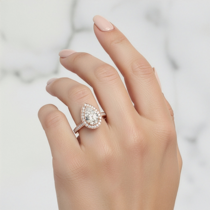 style Engagement Ring, center is Pear shape Diamond Report by IGI, D Color & VS1 clarity, Made in 14k Rose Gold (2.05 ct. tw.)