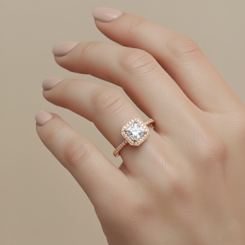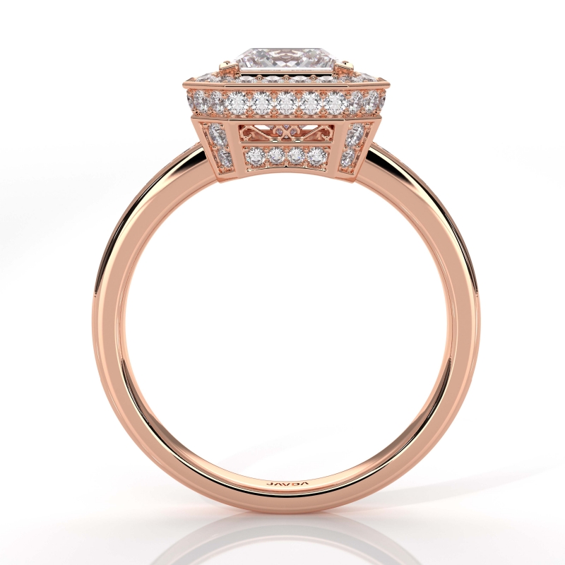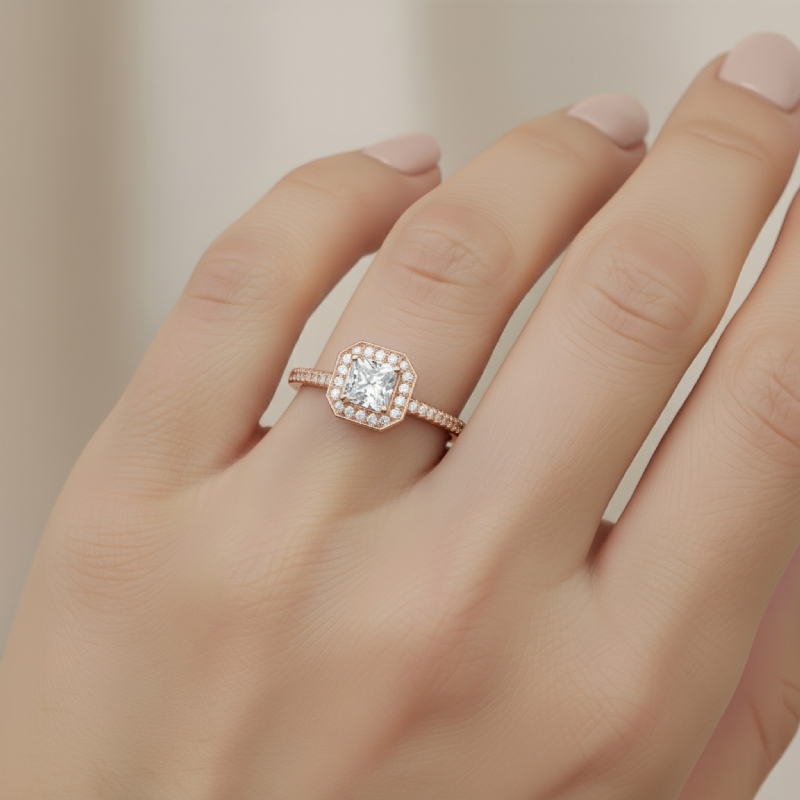 1.05Ct Diamond Engagement Ring 18k Rose Gold Princess Semi Mount Halo.