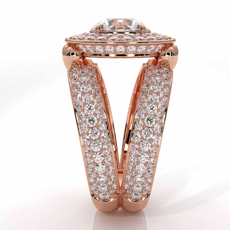 Round Shape Diamond Antique Semi Mount Engagement Ring Halo Setting 18k Rose Gold 2.25Ct - javda.com