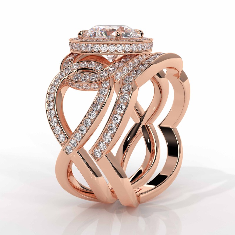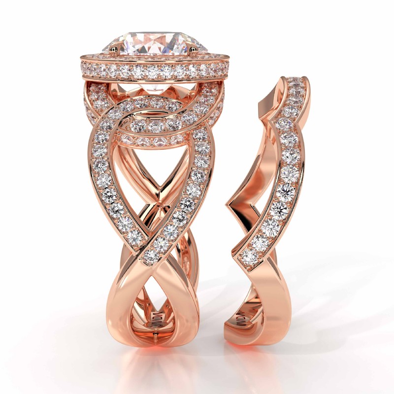 Twisted Halo Bridal Set style Engagement Ring, center is Round shape Diamond Report by IGI, D Color & VS1 clarity, Made in 14k Rose Gold (2.74 ct. tw.)