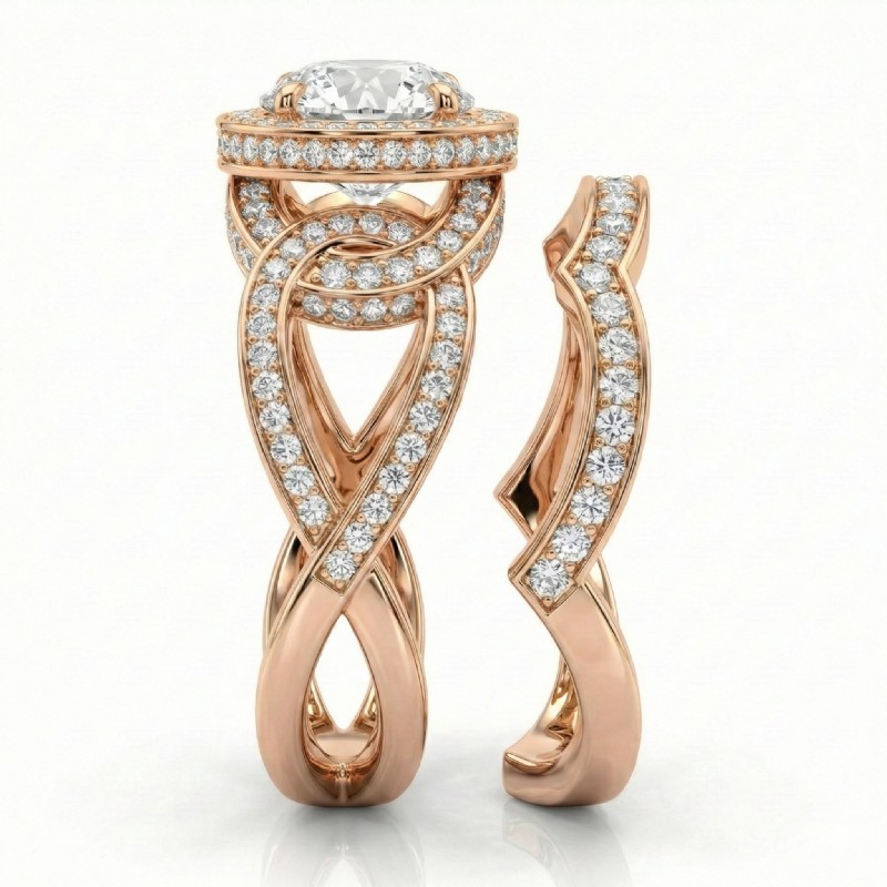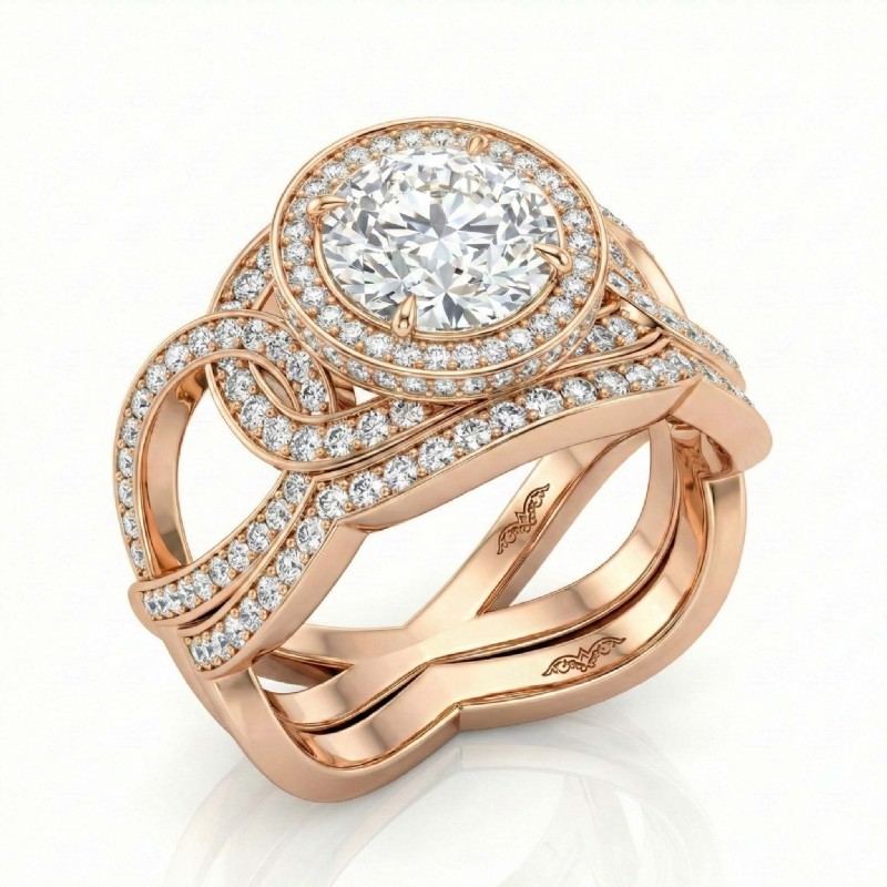 Twisted Halo Bridal Set style Engagement Ring, center is Round shape Diamond Report by IGI, D Color & VS1 clarity, Made in 14k Rose Gold (2.74 ct. tw.)