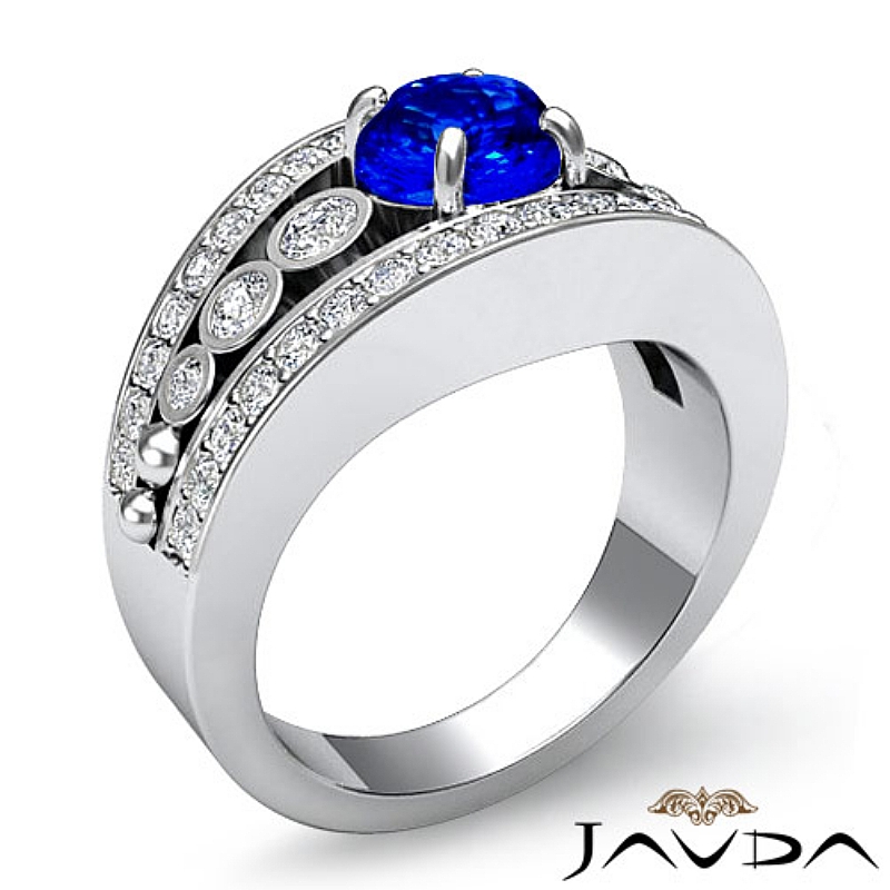 Bezel Setting Sidestone style Engagement Ring, center is Oval shape D Block Tanzanite Report by , Color & clarity, Made in 18k White Gold (1.75 ct. tw.)