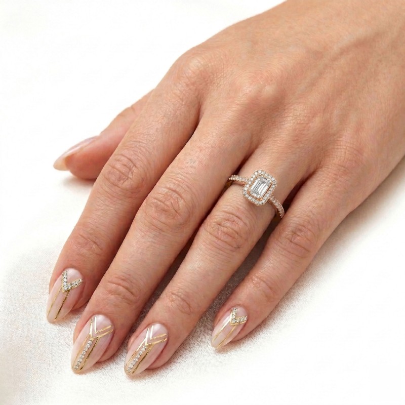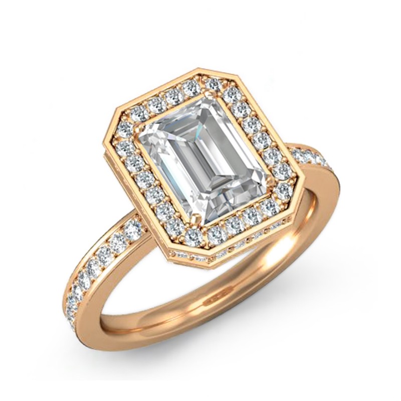 style Engagement Ring, center is Emerald shape Diamond Report by GIA, D Color & VVS1 clarity, Made in 18k Rose Gold (1.39 ct. tw.)