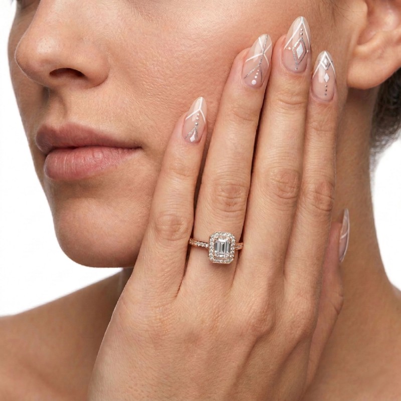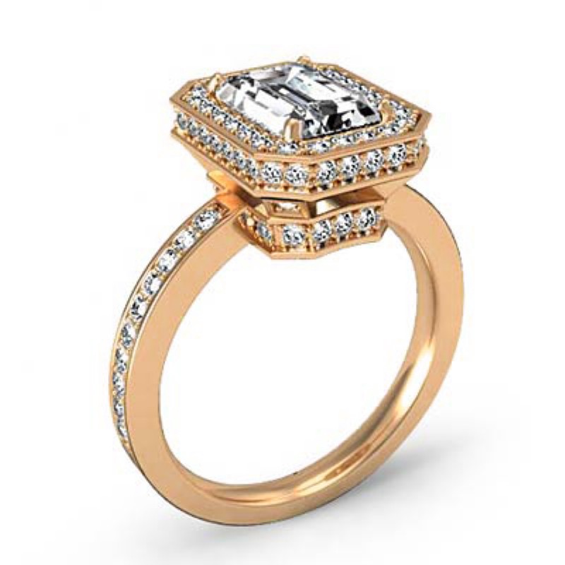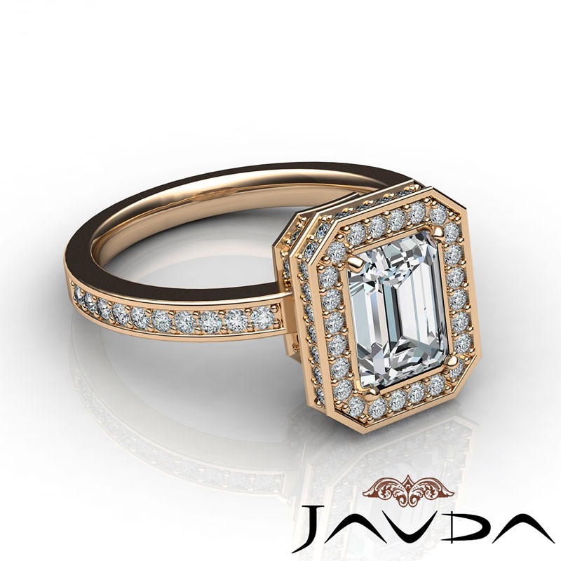 0.89Ct Halo Pave Setting Diamond Engagement Ring Emerald Semi Mount 18k Rose Gold.