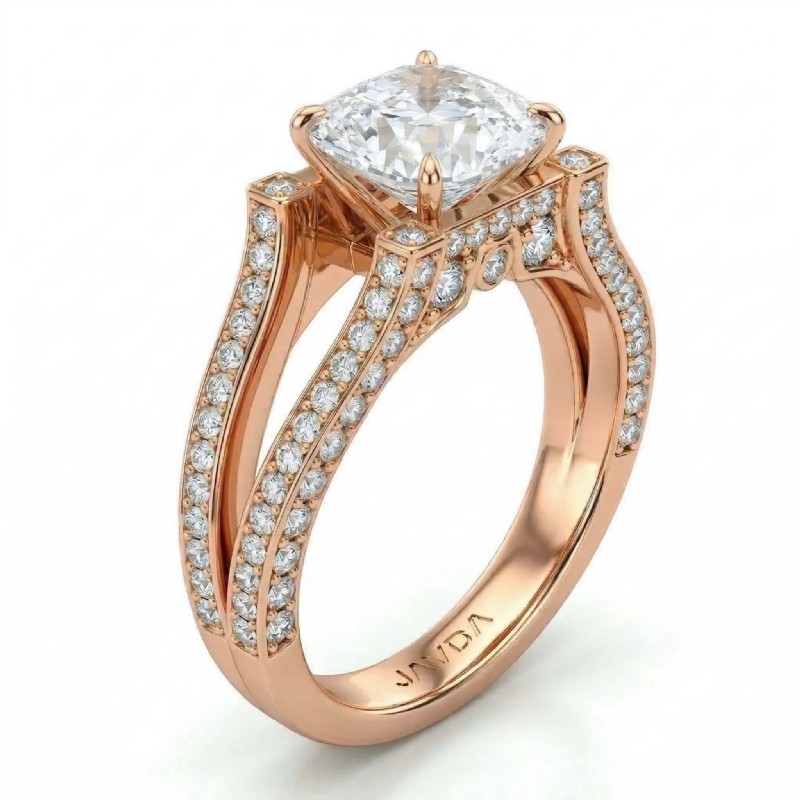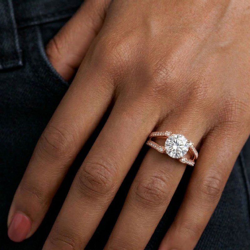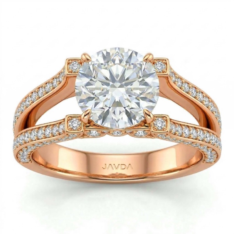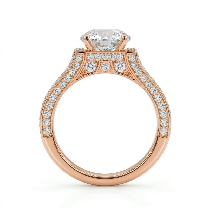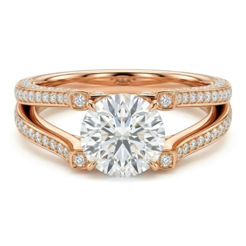 0.71Ct Round Diamond Women's Engagement Ring Setting 18k Rose Gold Semi Mount.