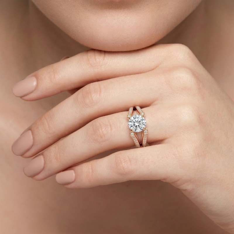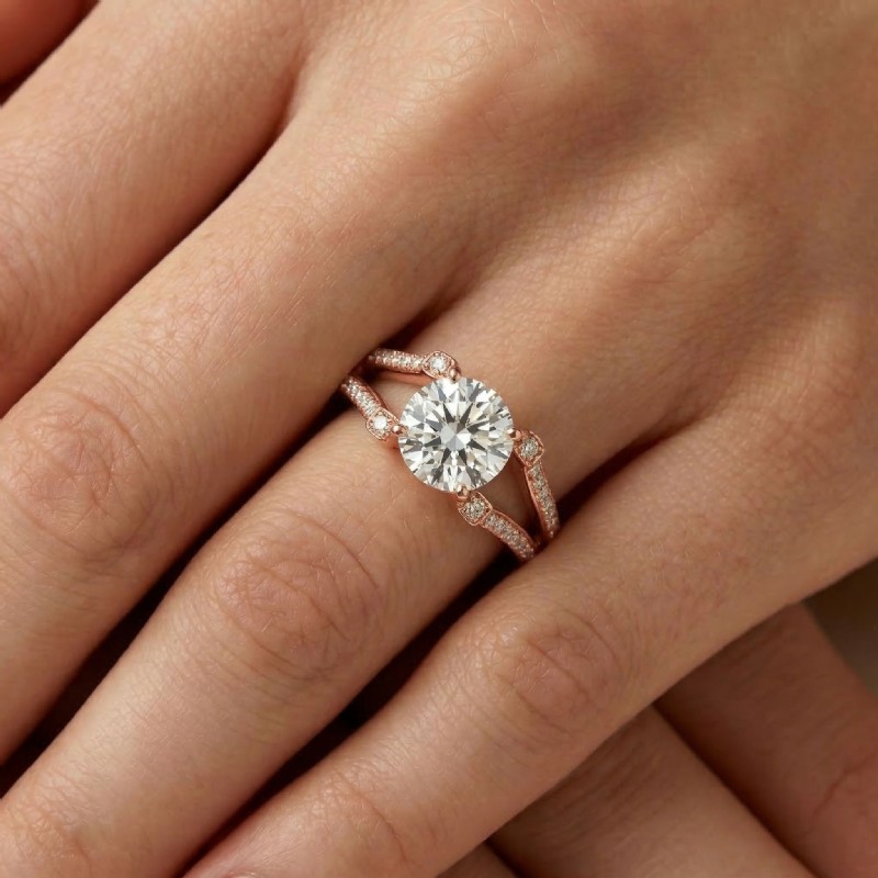 style Engagement Ring, center is Round shape Diamond Report by GIA, H Color & SI1 clarity, Made in 18k Rose Gold (1.51 ct. tw.)