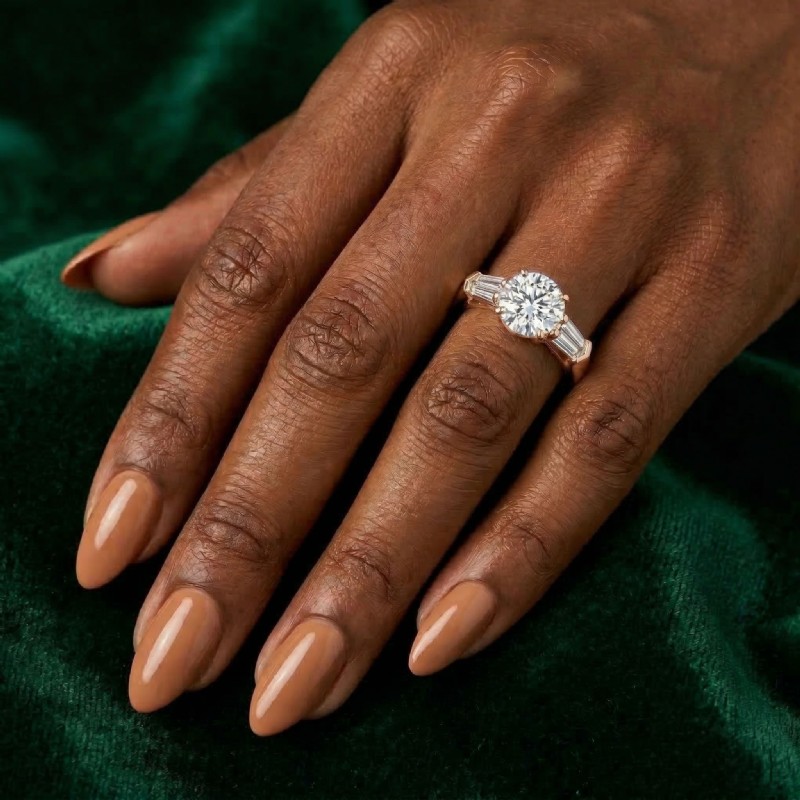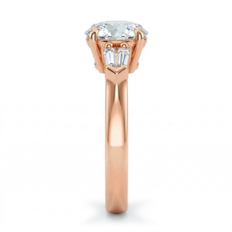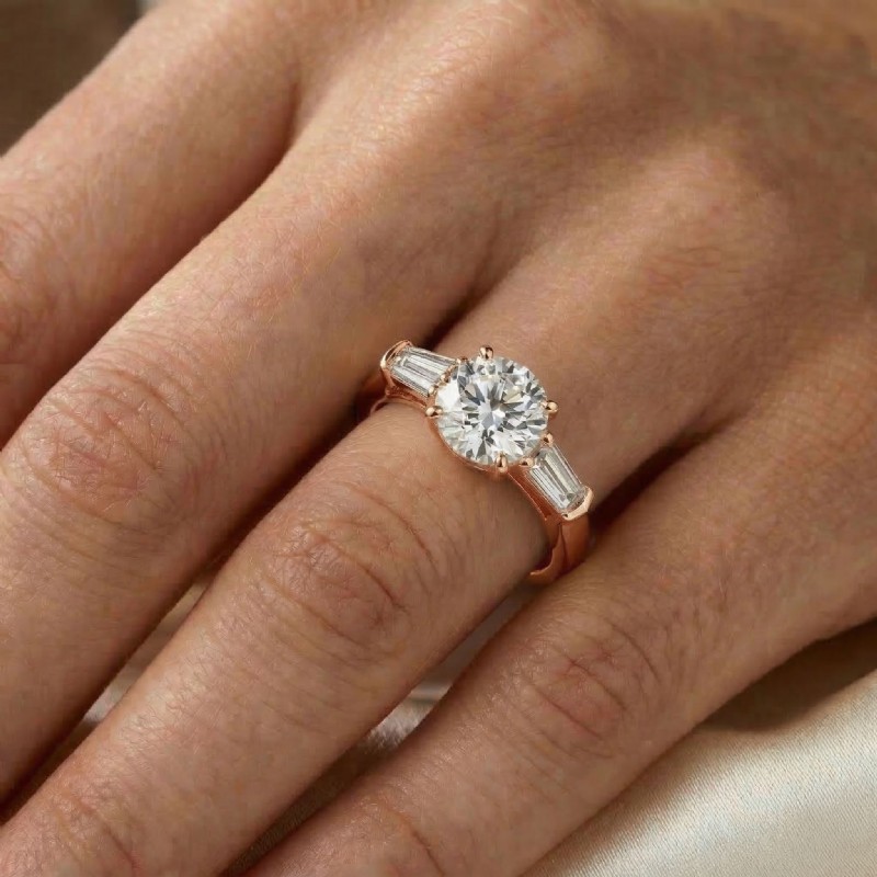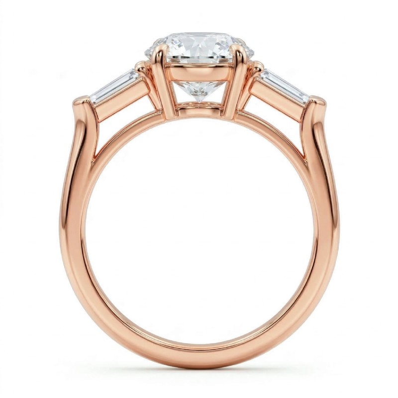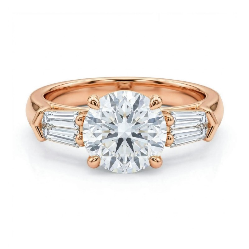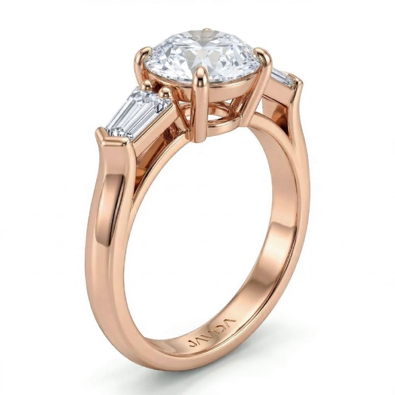 Baguette Round Diamond 3 Stone Engagement Ring Setting 18k Rose Gold 0.5Ct - javda.com