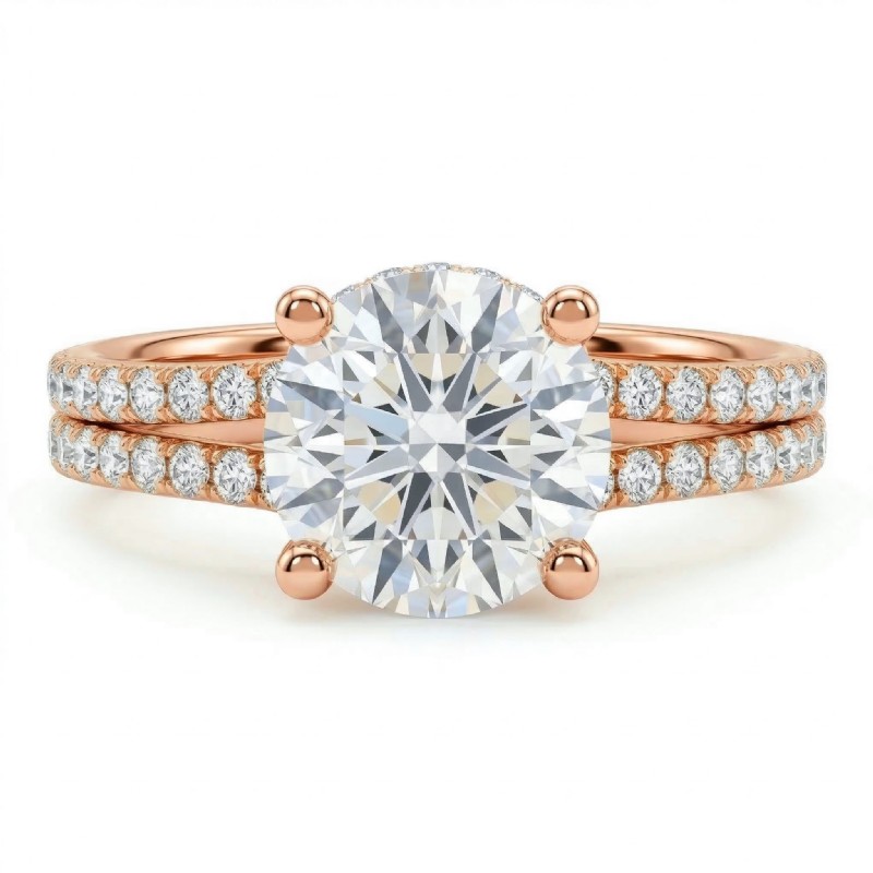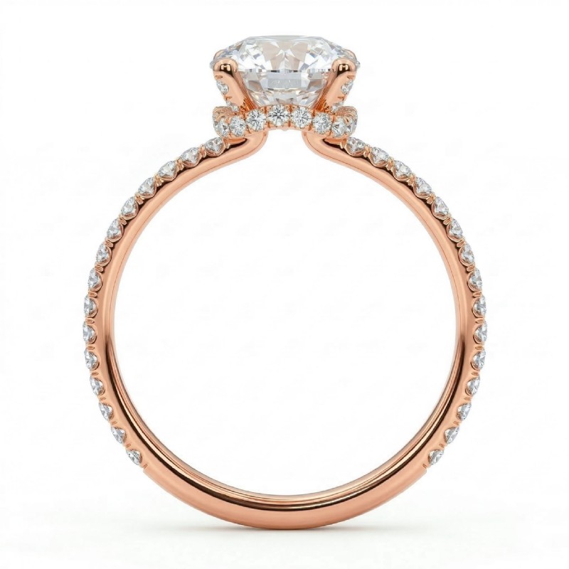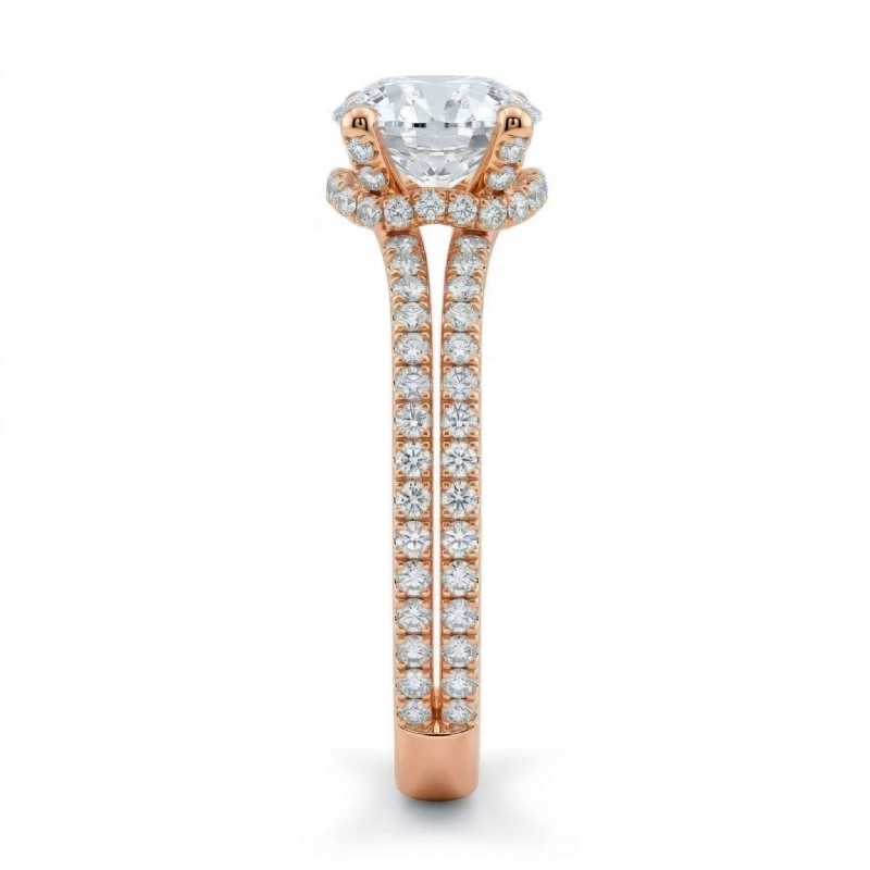 style Engagement Ring, center is Round shape Diamond Report by GIA, F Color & VS1 clarity, Made in 14k Rose Gold (1.15 ct. tw.)