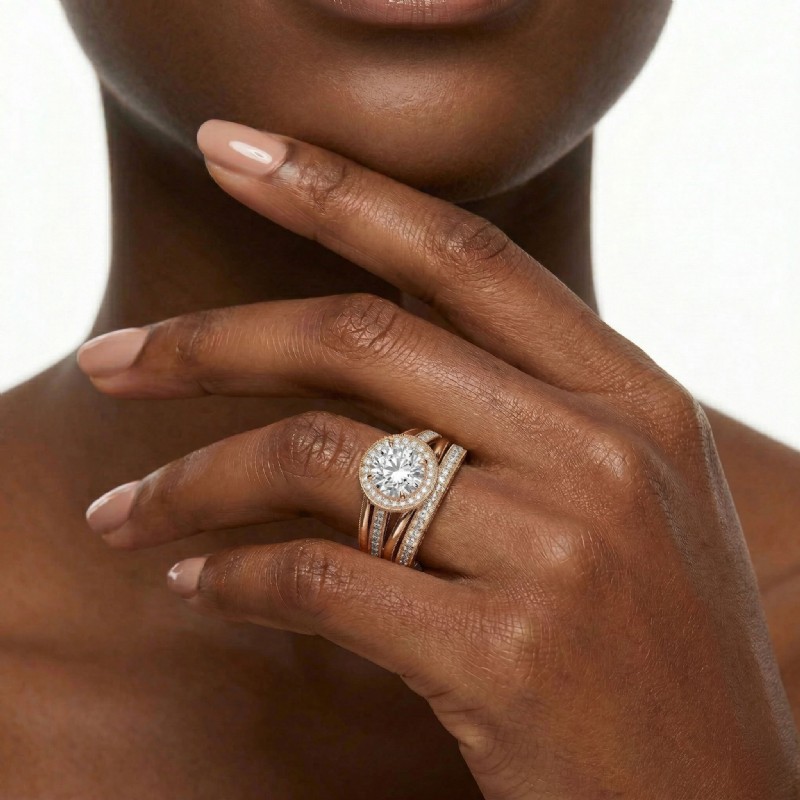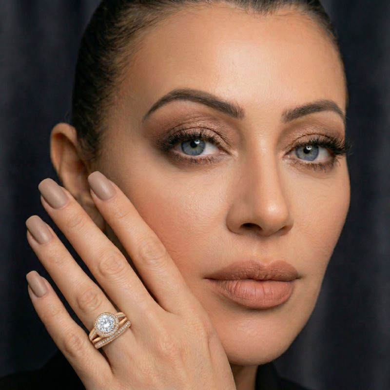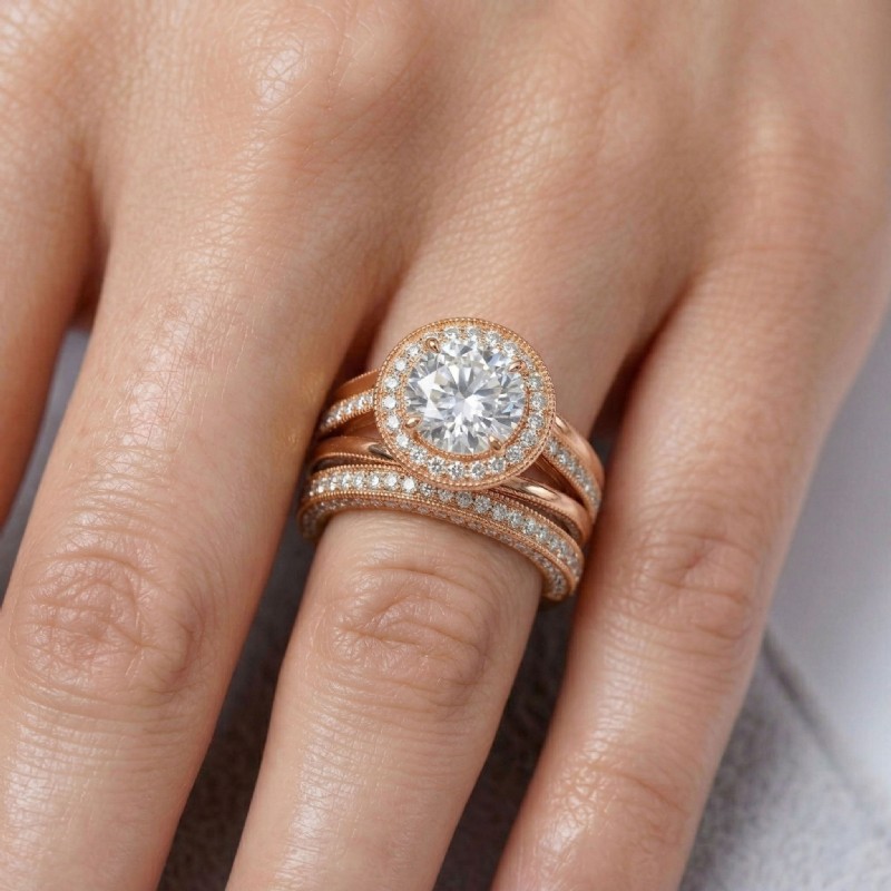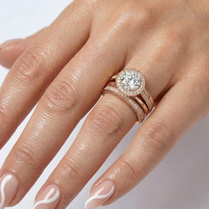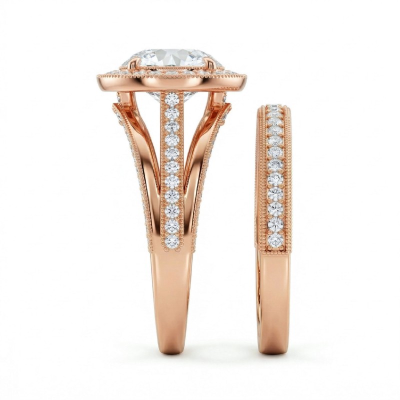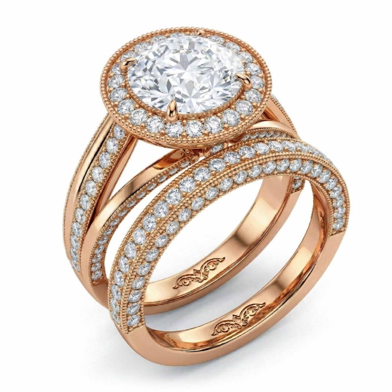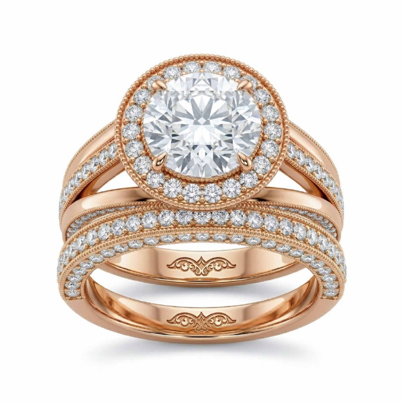 Pave Diamond Engagement Ring Round Semi Mount Bridal Sets 18k Rose Gold 1.7Ct - javda.com