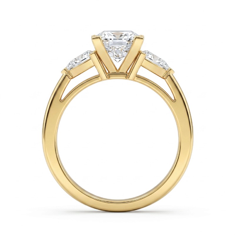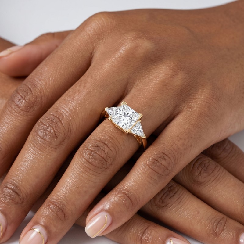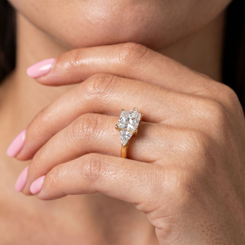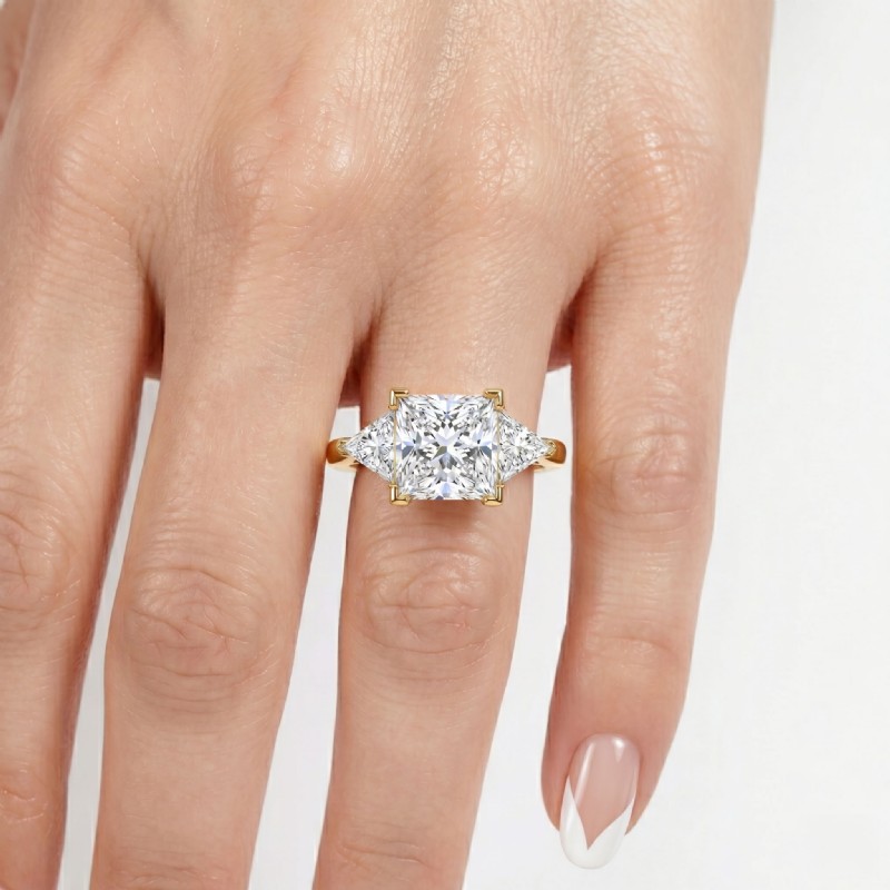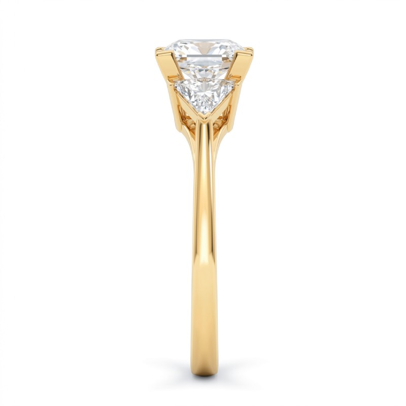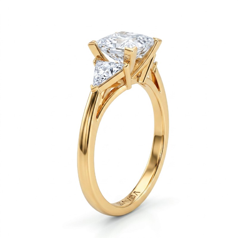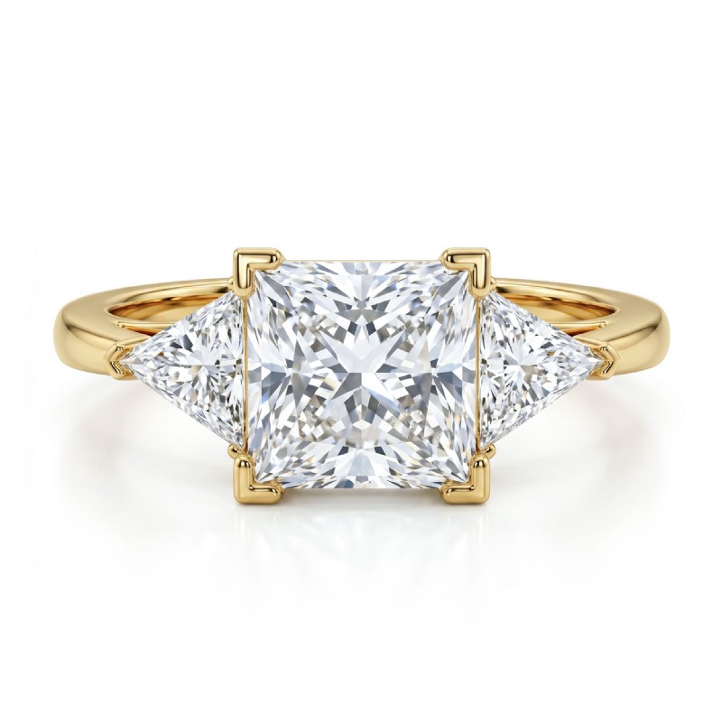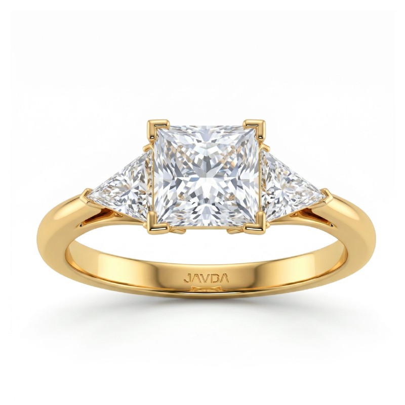 Three Stone Diamond Engagement Trillion Princess Setting 18k Yellow Gold 0.55Ct - javda.com