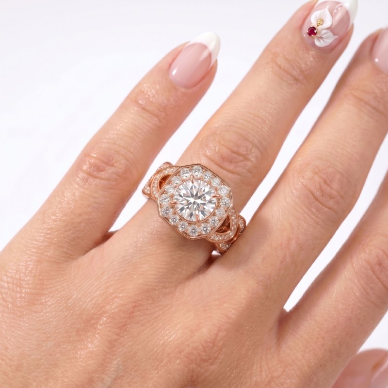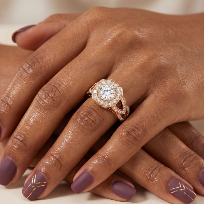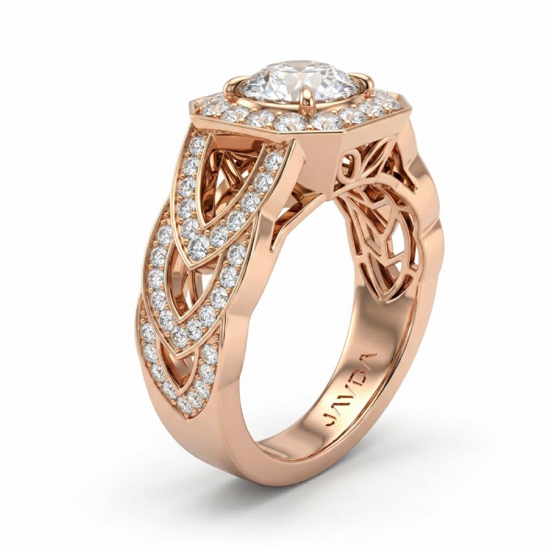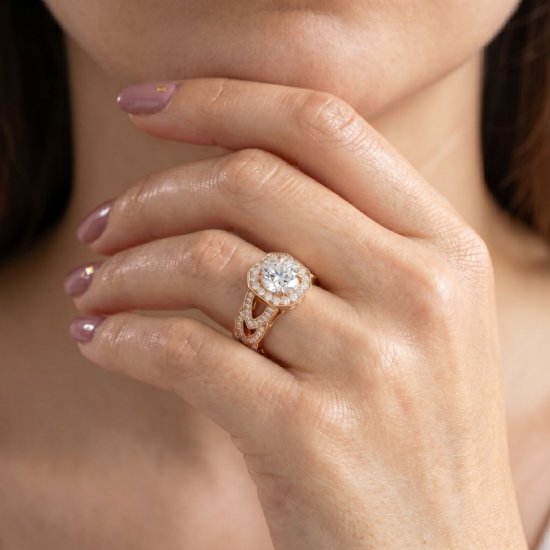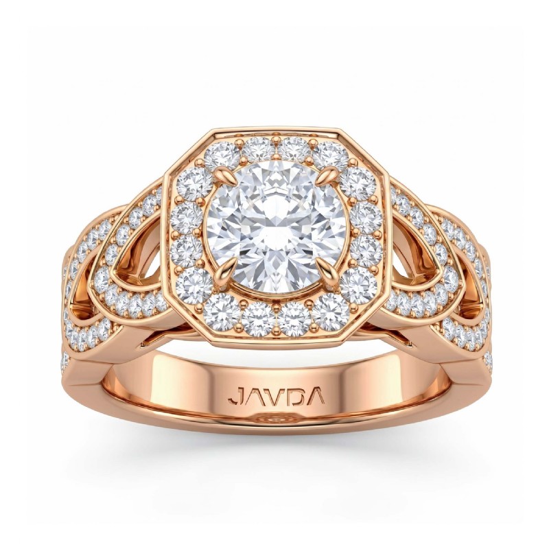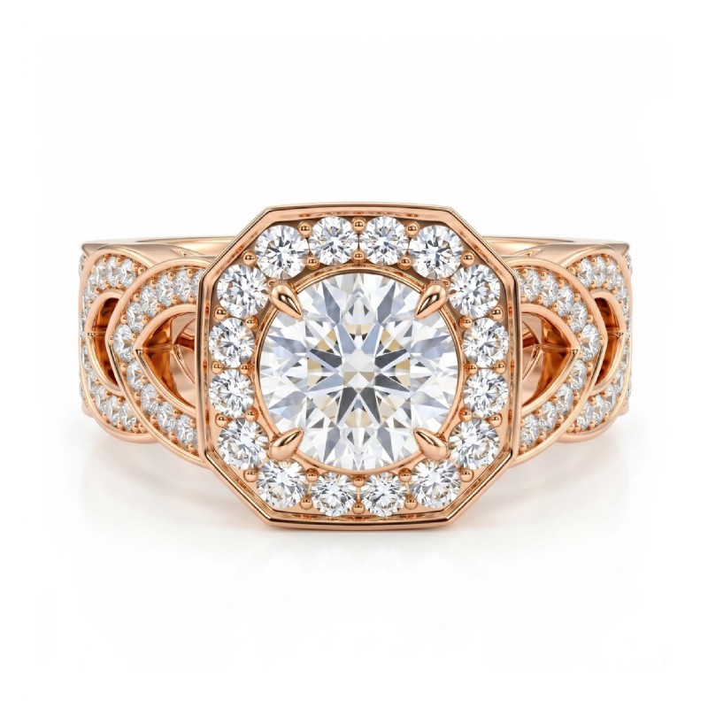 style Engagement Ring, center is Round shape Diamond Report by IGI, D Color & VS1 clarity, Made in 14k Rose Gold (2.32 ct. tw.)