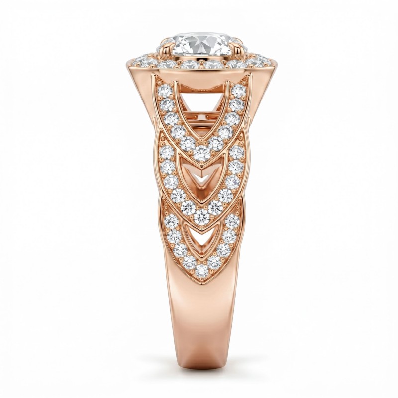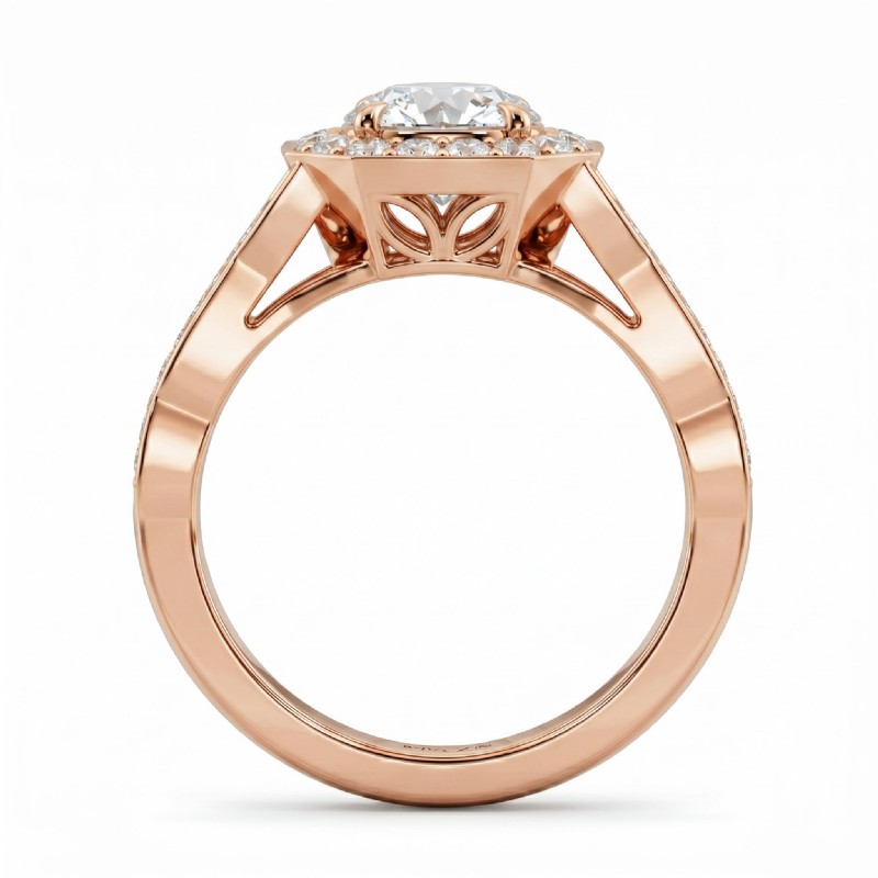 Round Semi Mount Diamond Engagement Ring Halo Pave Setting 14k Rose Gold 1.28Ct.