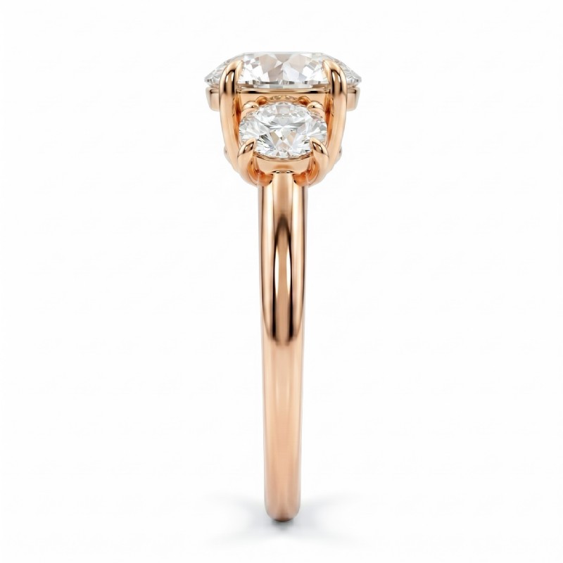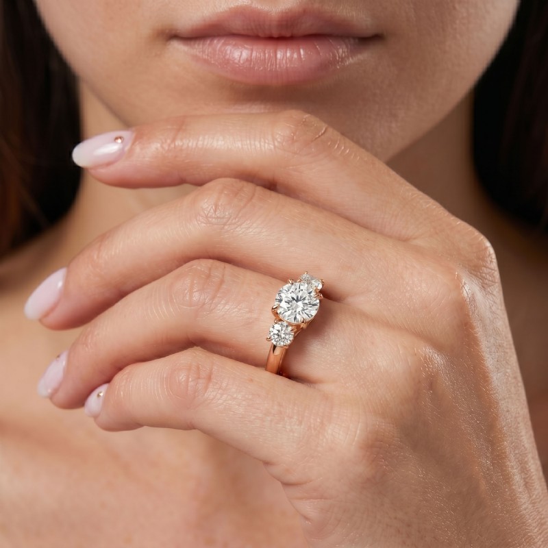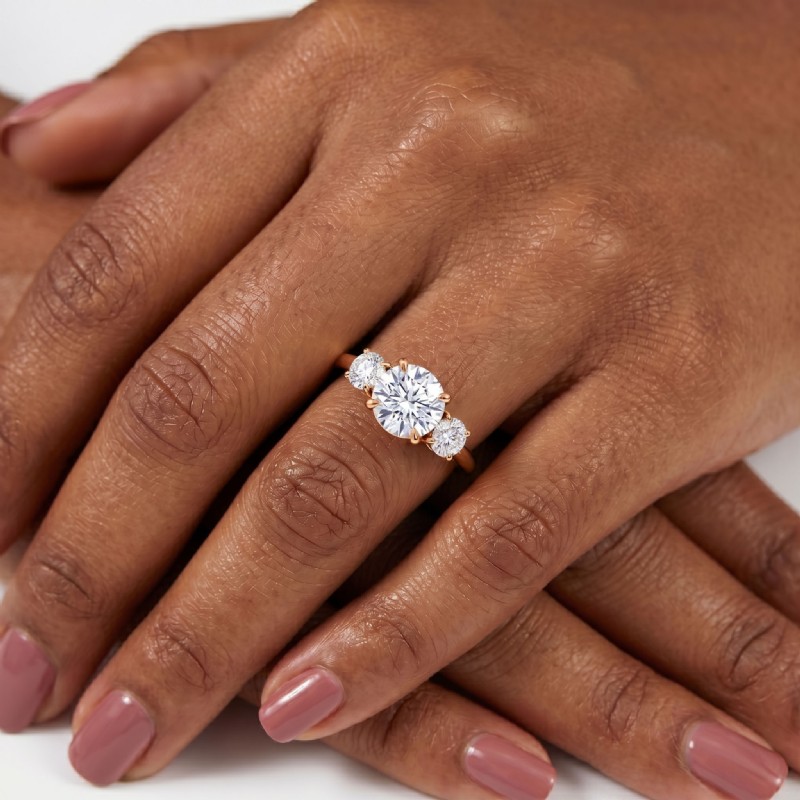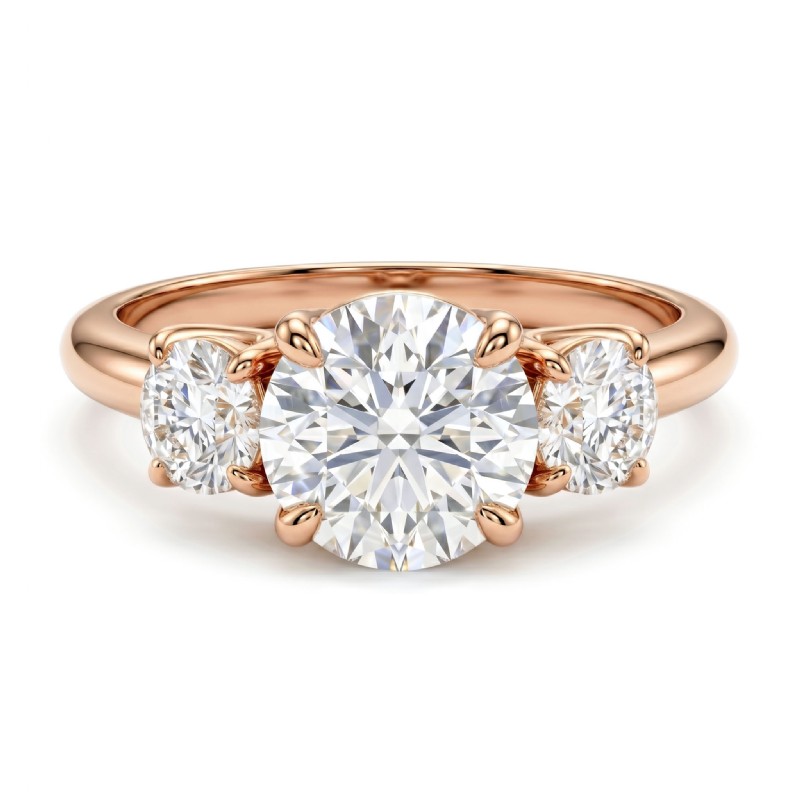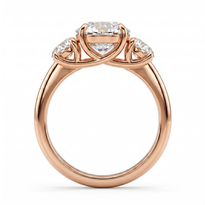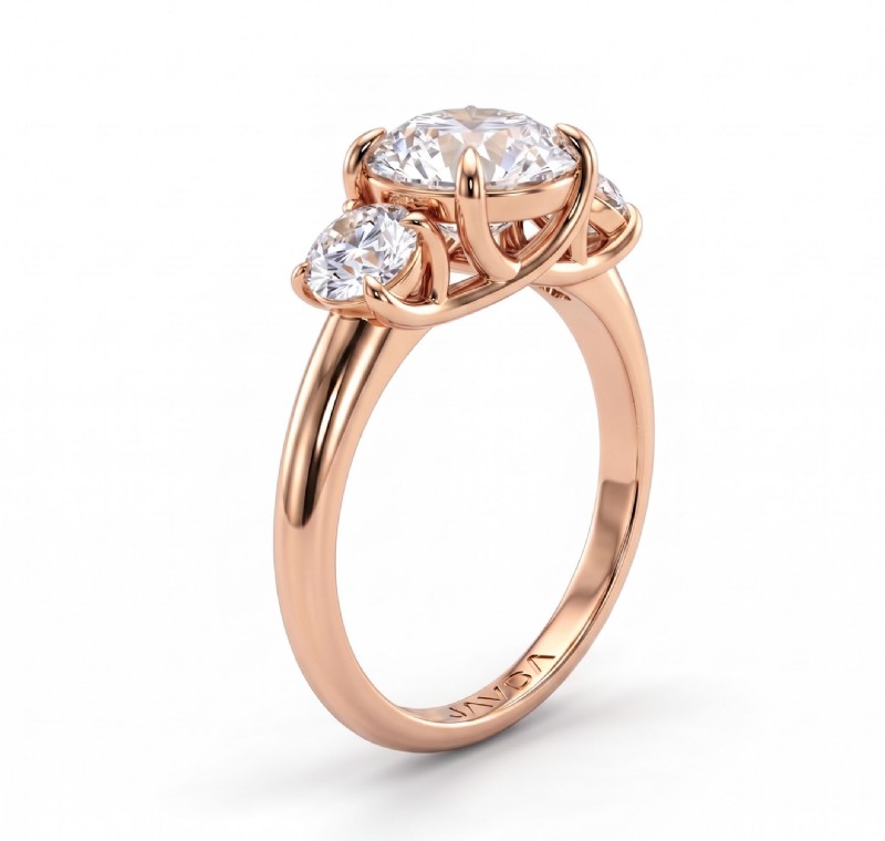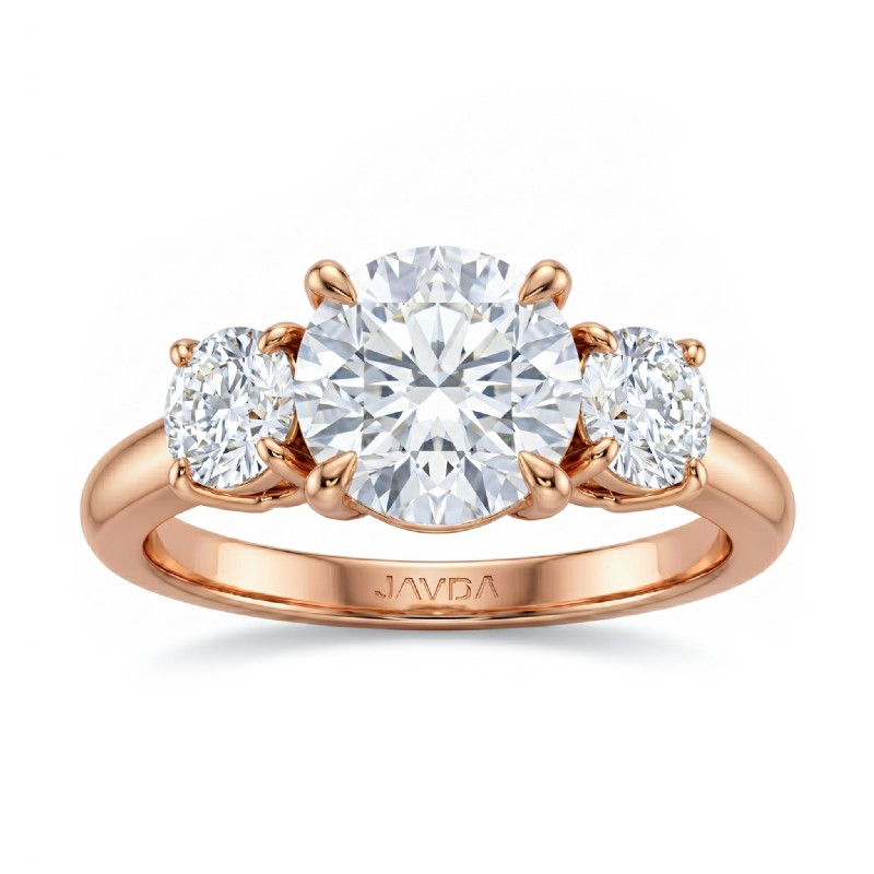 Round Semi Mount Diamond 3 Stone Engagement Ring 14k Rose Gold 0.8Ct.
