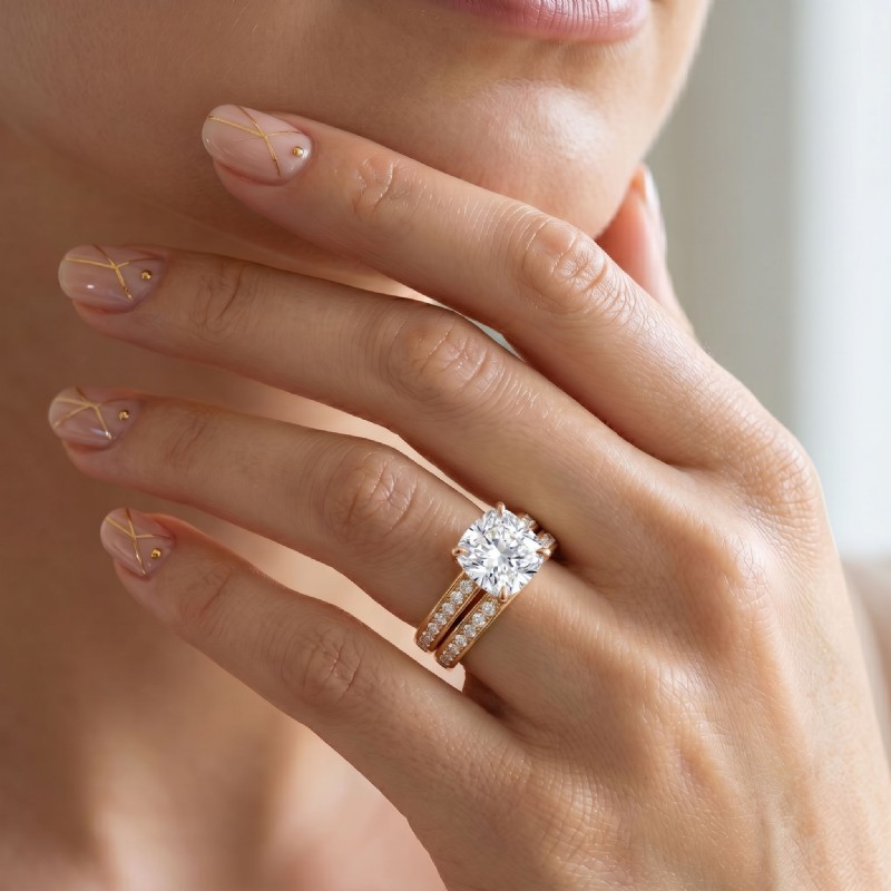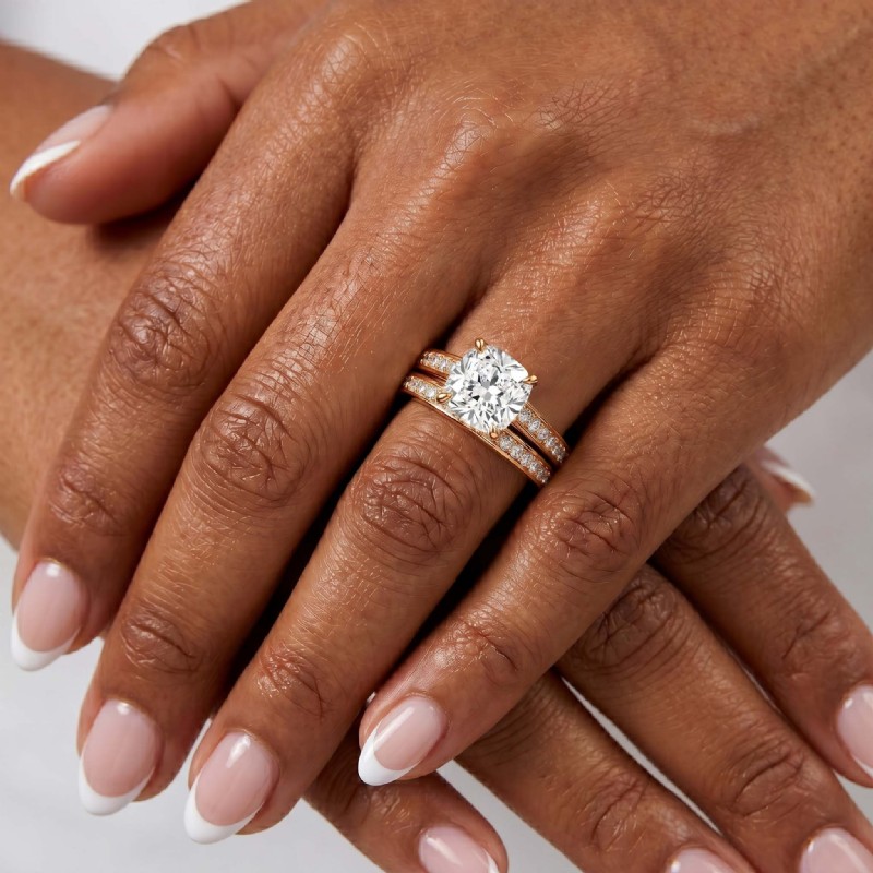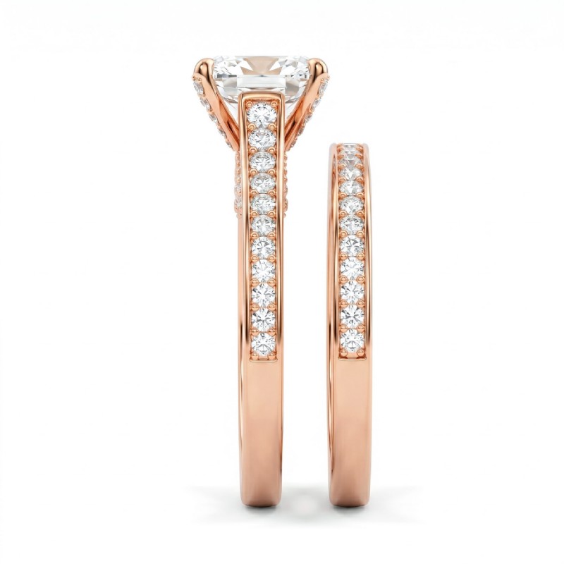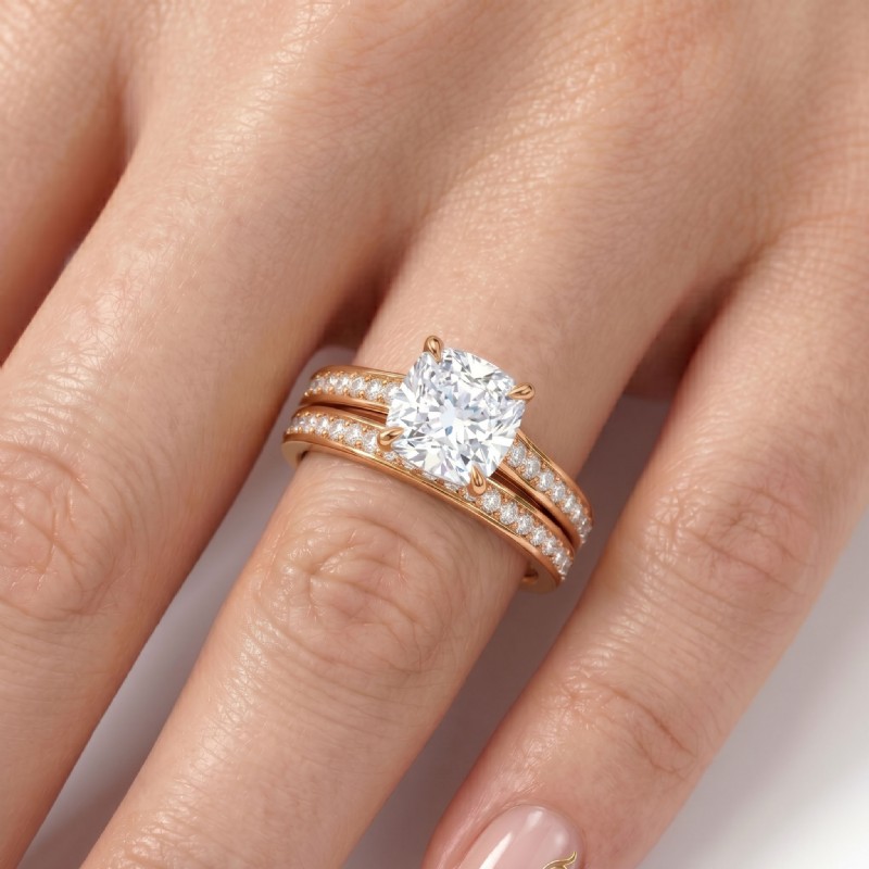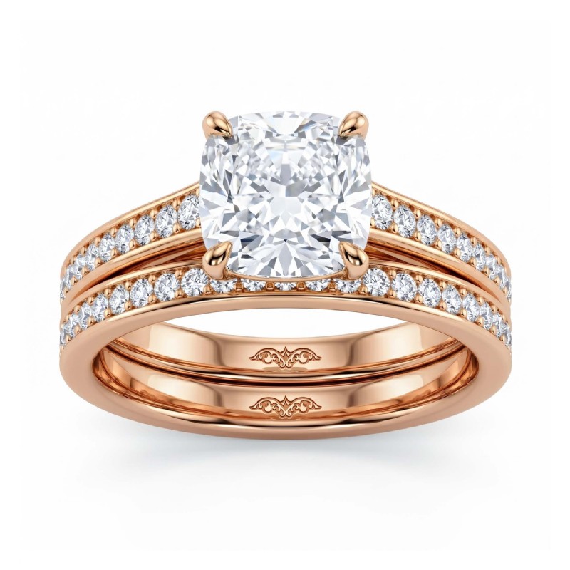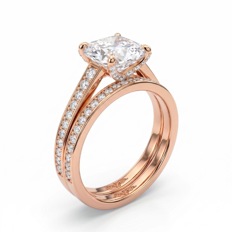 Cushion Cut Diamond Engagement Semi Mount Ring Bridal Set 18k Rose Gold 1.25Ct - javda.com