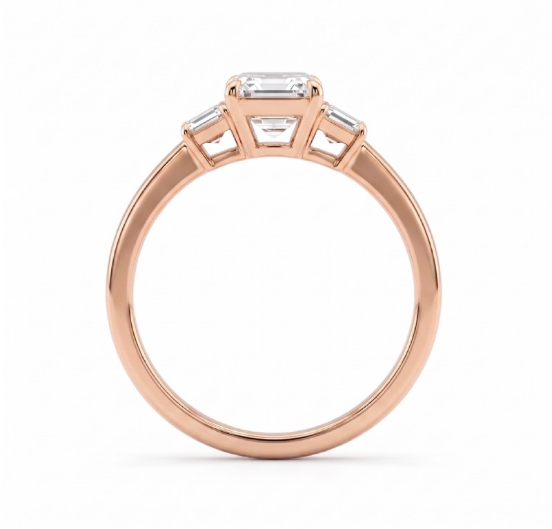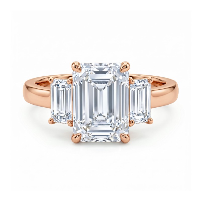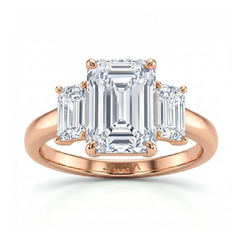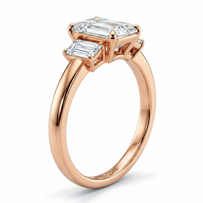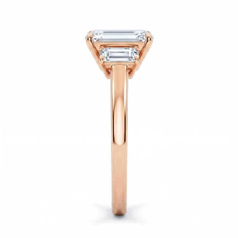 3 Stone Emerald Shape Diamond Semi Mount Ring 14k Rose Gold 0.4Ct - javda.com
