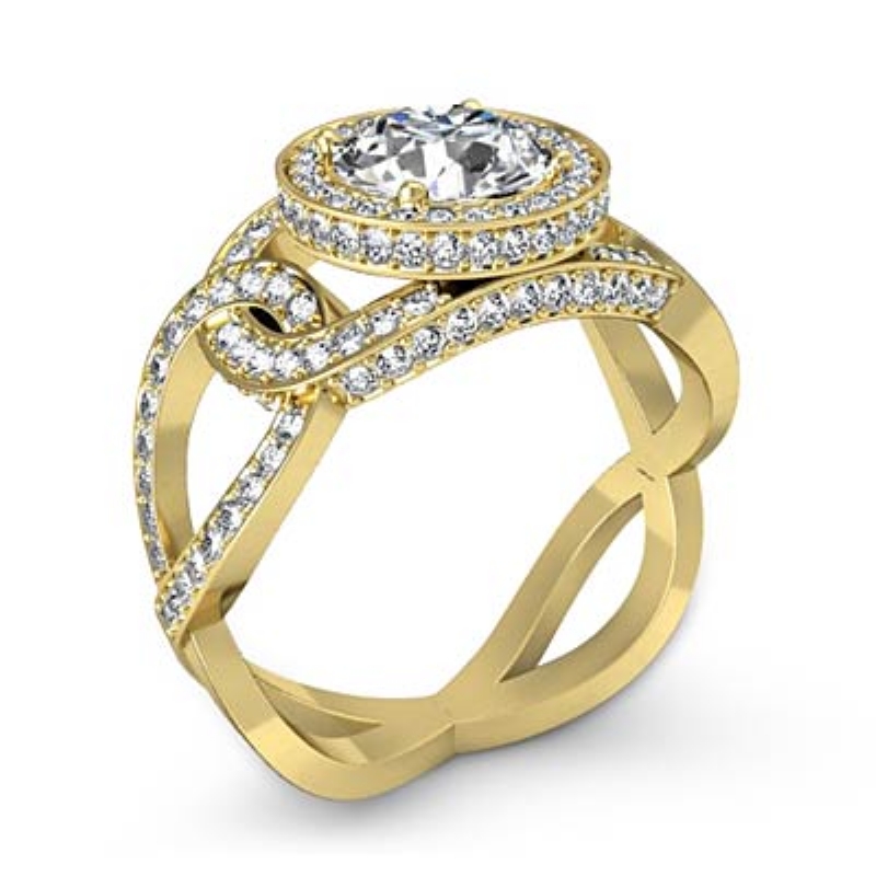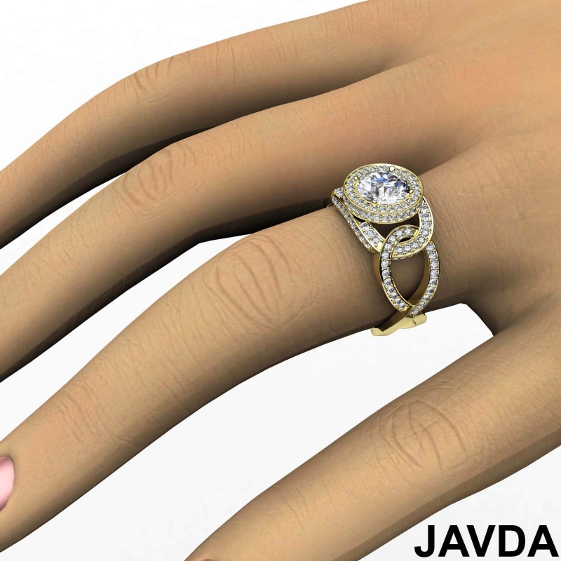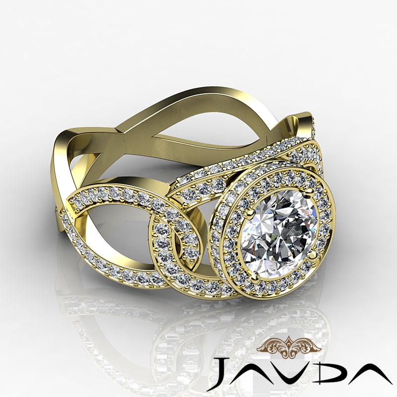 Halo Diamond Engagement Round Semi Mount Ring 14k Yellow Gold 1.3Ct.