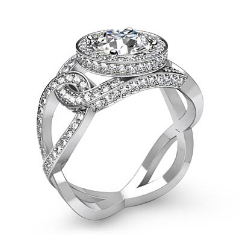 Halo Diamond Engagement Round Semi Mount Ring Platinum 950 1.3Ct.