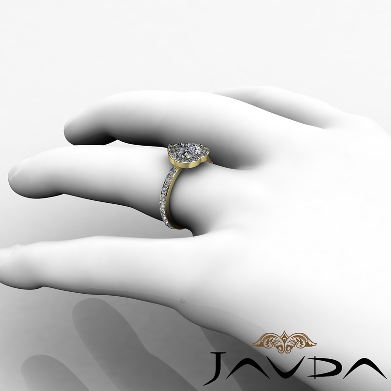 Diamond Engagement Ring 14k Yellow Gold Round Semi Mount Halo Pave Setting 0.85Ct.