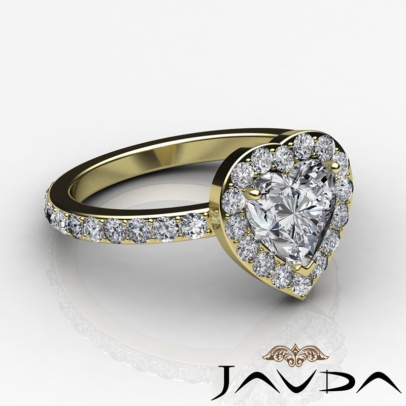 Circa Halo Sidestone Pave Set style Engagement Ring, center is Heart shape Diamond Report by GIA, H Color & VS1 clarity, Made in 14k Yellow Gold (1.39 ct. tw.)