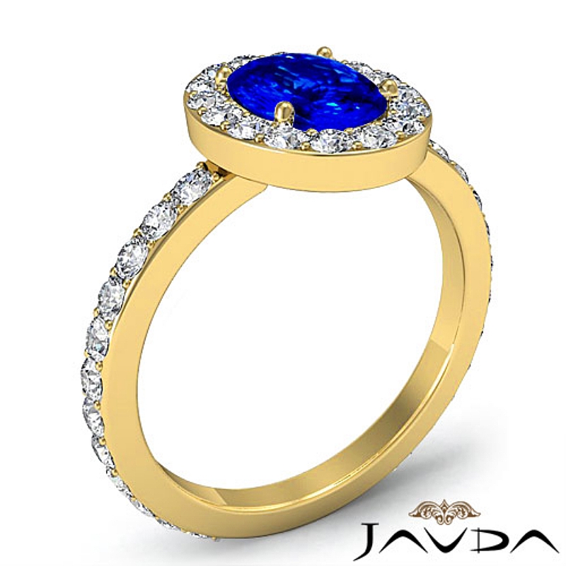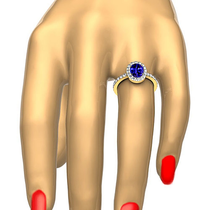 Circa Halo Sidestone Pave Set style Engagement Ring, center is Oval shape D Block Tanzanite Report by , Color & clarity, Made in 14k Yellow Gold (1.85 ct. tw.)