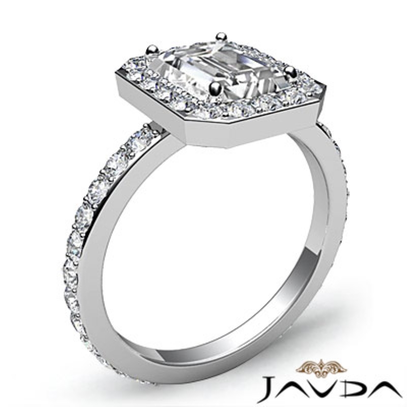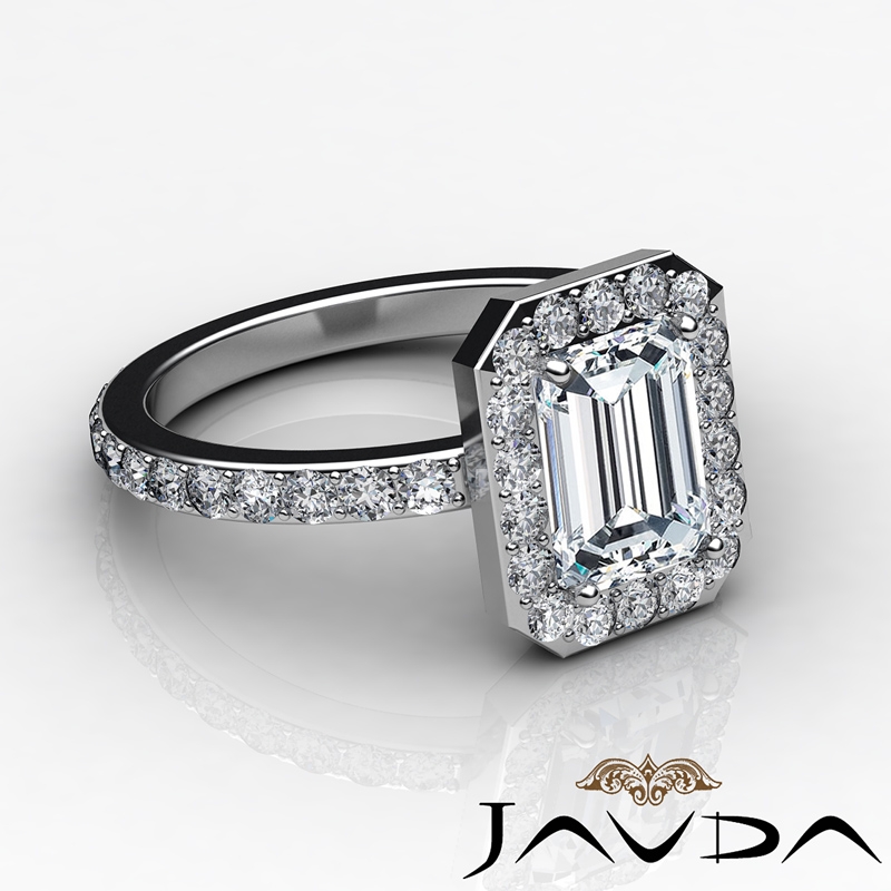 Circa Halo Sidestone Pave Set style Engagement Ring, center is Emerald shape Diamond Report by GIA, G Color & VVS1 clarity, Made in 18k White Gold (1.55 ct. tw.)