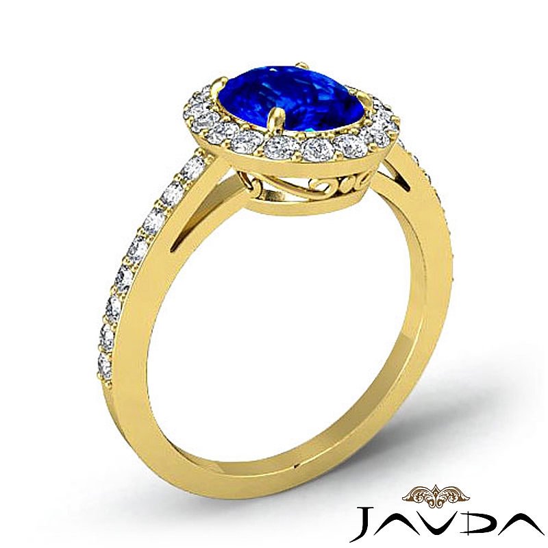 style Engagement Ring, center is Oval shape D Block Tanzanite Report by , Color & clarity, Made in 18k Yellow Gold (1.45 ct. tw.)