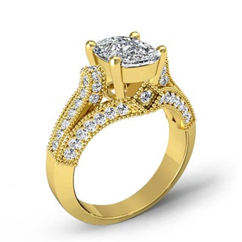 style Engagement Ring, center is Cushion shape Diamond Report by GIA, D Color & VS1 clarity, Made in 14k Yellow Gold (1.3 ct. tw.)
