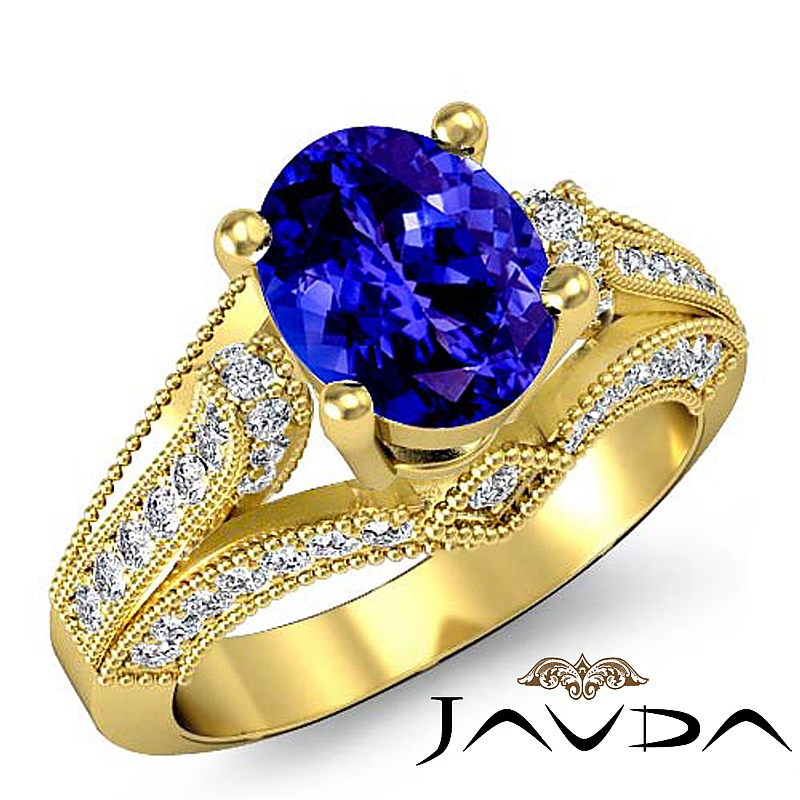 style Engagement Ring, center is Oval shape D Block Tanzanite Report by , Color & clarity, Made in 18k Yellow Gold (1.8 ct. tw.)