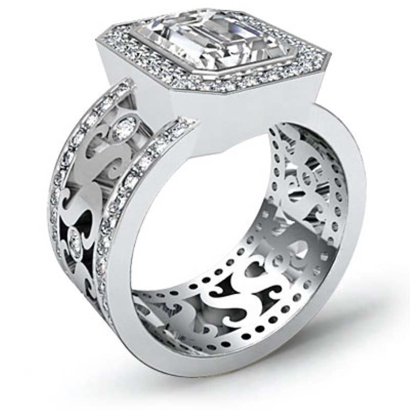 style Engagement Ring, center is Emerald shape Diamond Report by GIA, H Color & VVS1 clarity, Made in 18k White Gold (1.8 ct. tw.)