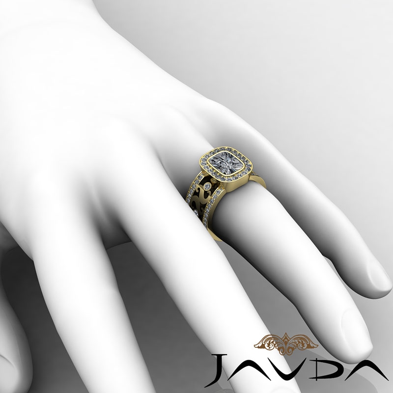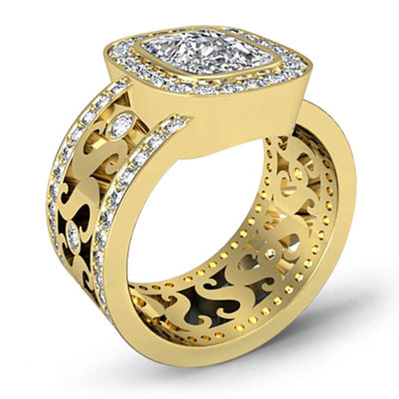 style Engagement Ring, center is Cushion shape Diamond Report by GIA, D Color & VS1 clarity, Made in 18k Yellow Gold (1.8 ct. tw.)