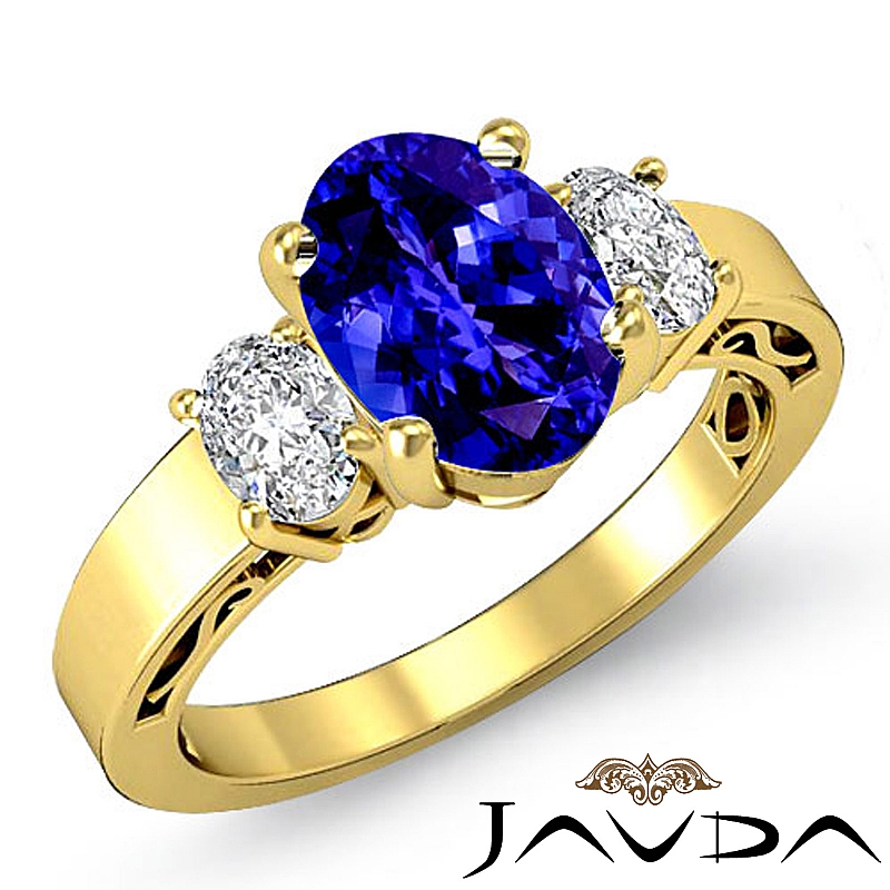style Engagement Ring, center is Oval shape D Block Tanzanite Report by , Color & clarity, Made in 14k Yellow Gold (1.45 ct. tw.)